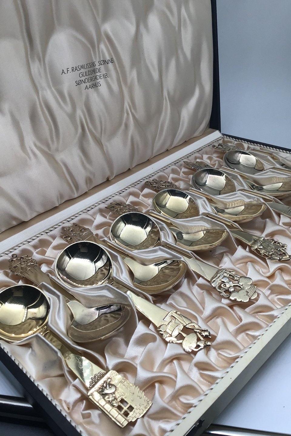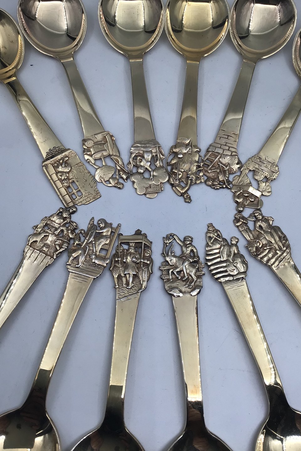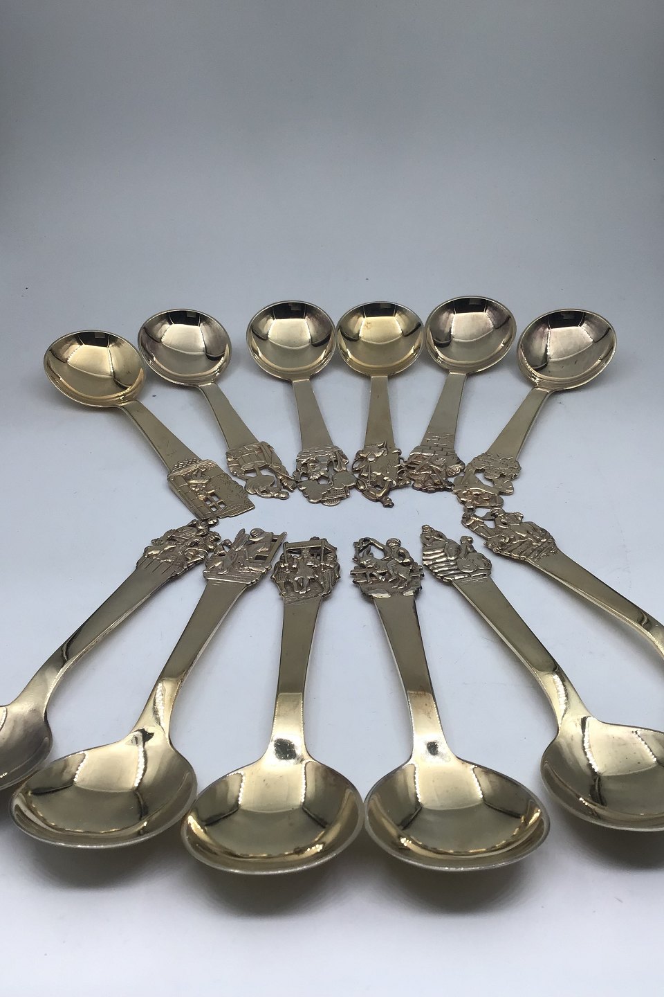 H.C. Andersen Fairytale Silver Gilt Childs' Spoons/Soup Spoons Set (12) Measures 14 cm (5.51 inch) Presentation Box