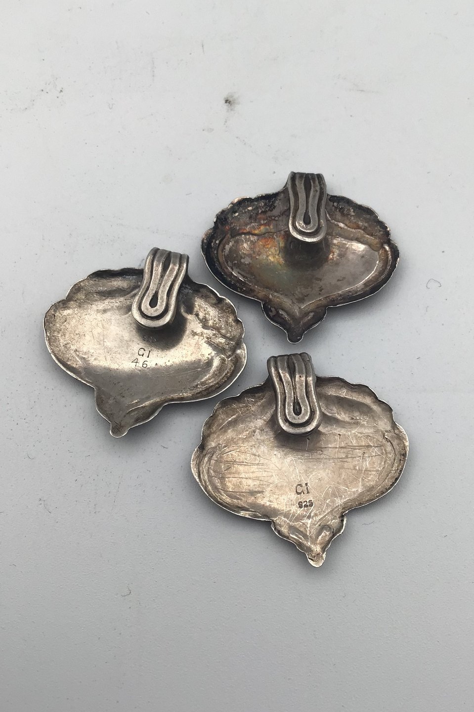 Set of 3 Georg Jensen Silver/Sterling Silver Bottle Marker No. 46 Measures 2.6 cm x 2.6 cm (1.02 inch x 1.02 inch) Weight 2.4 gr(0.08 oz) NB Engraved