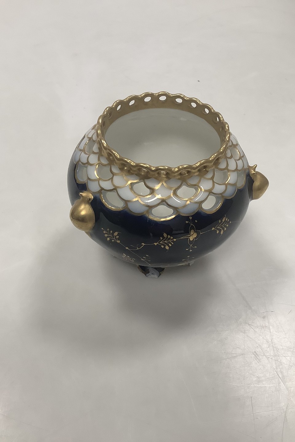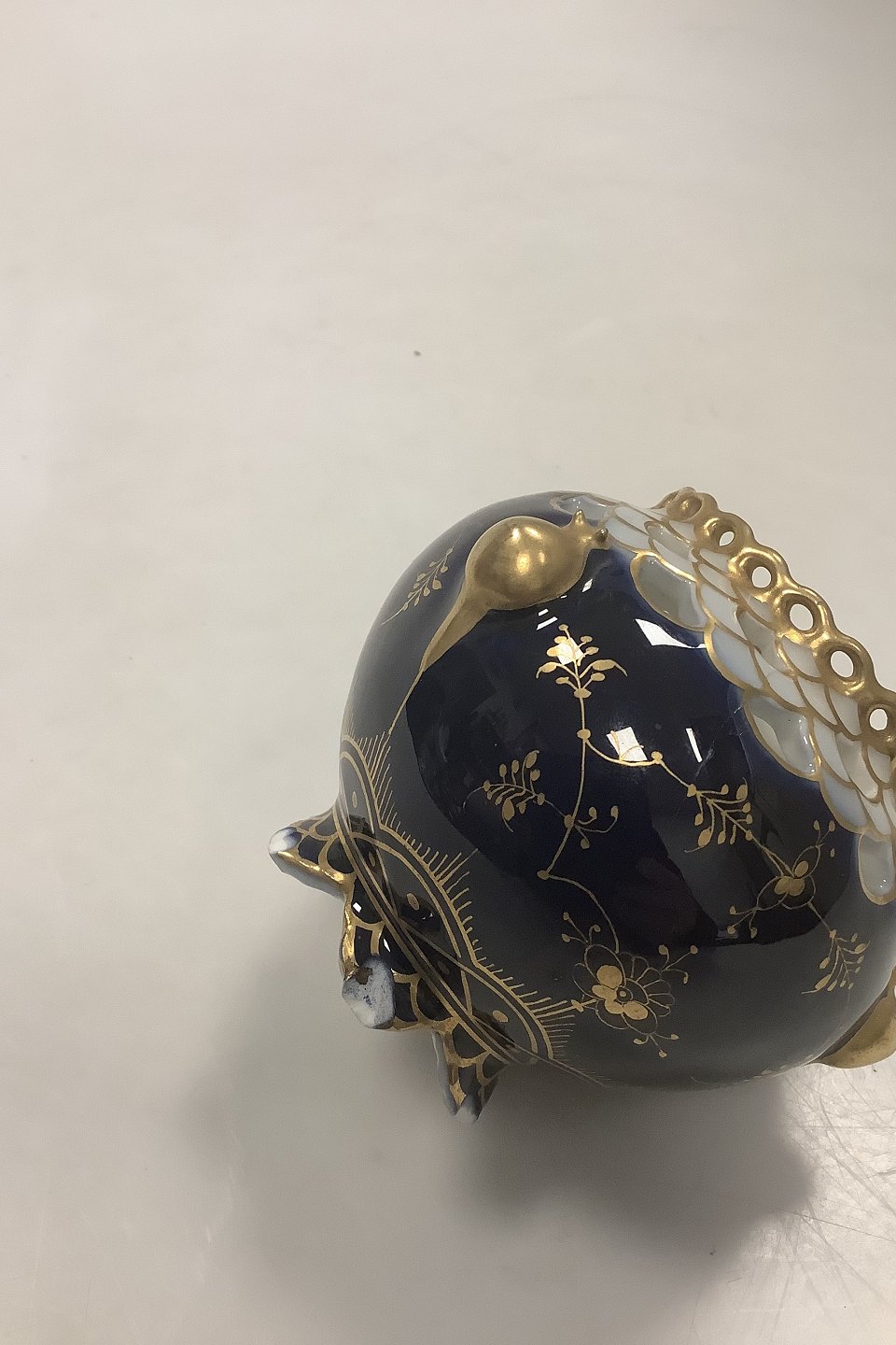 Royal Copenhagen Blue Fluted Full Lace Little Vase No 1043 in Rare Dark Blue and Gold.