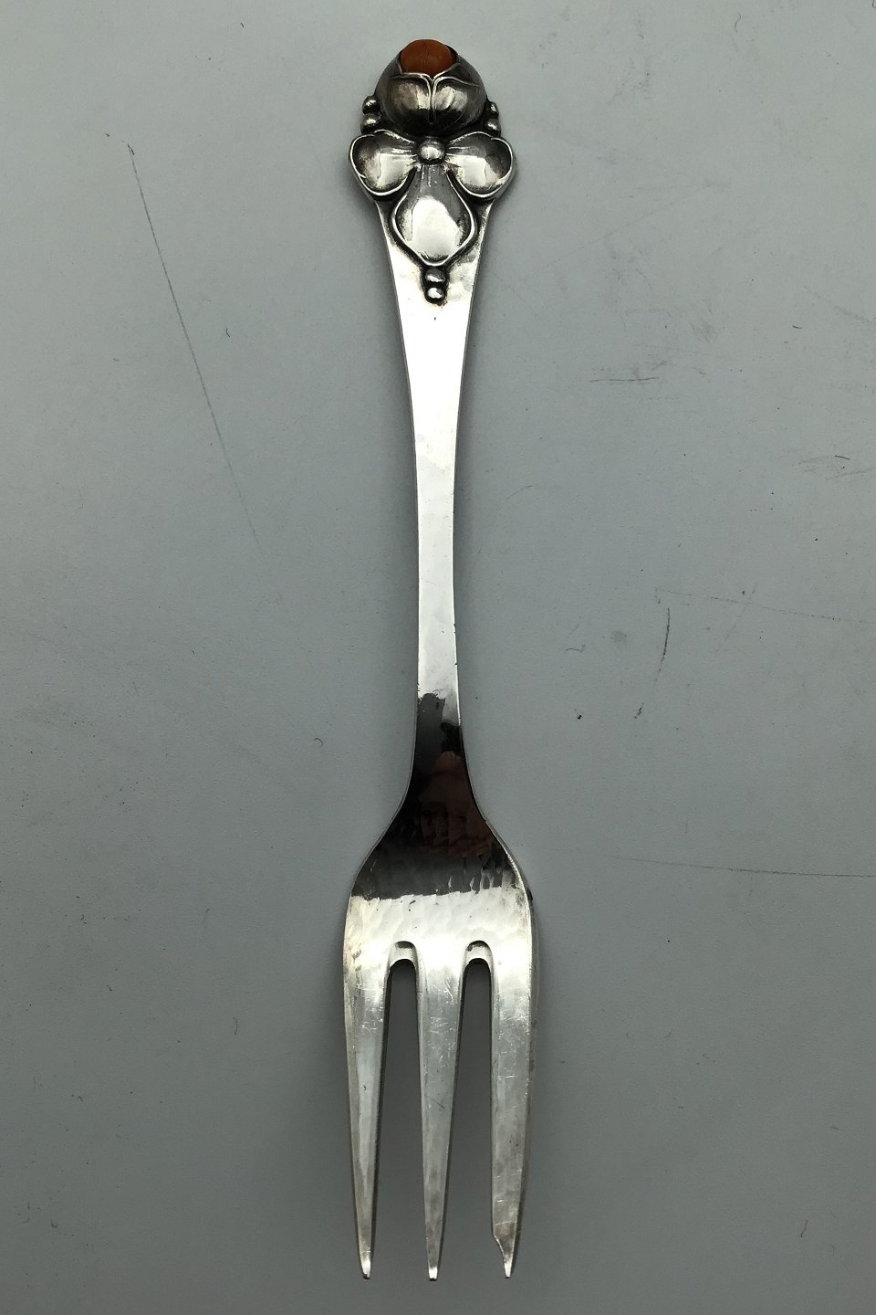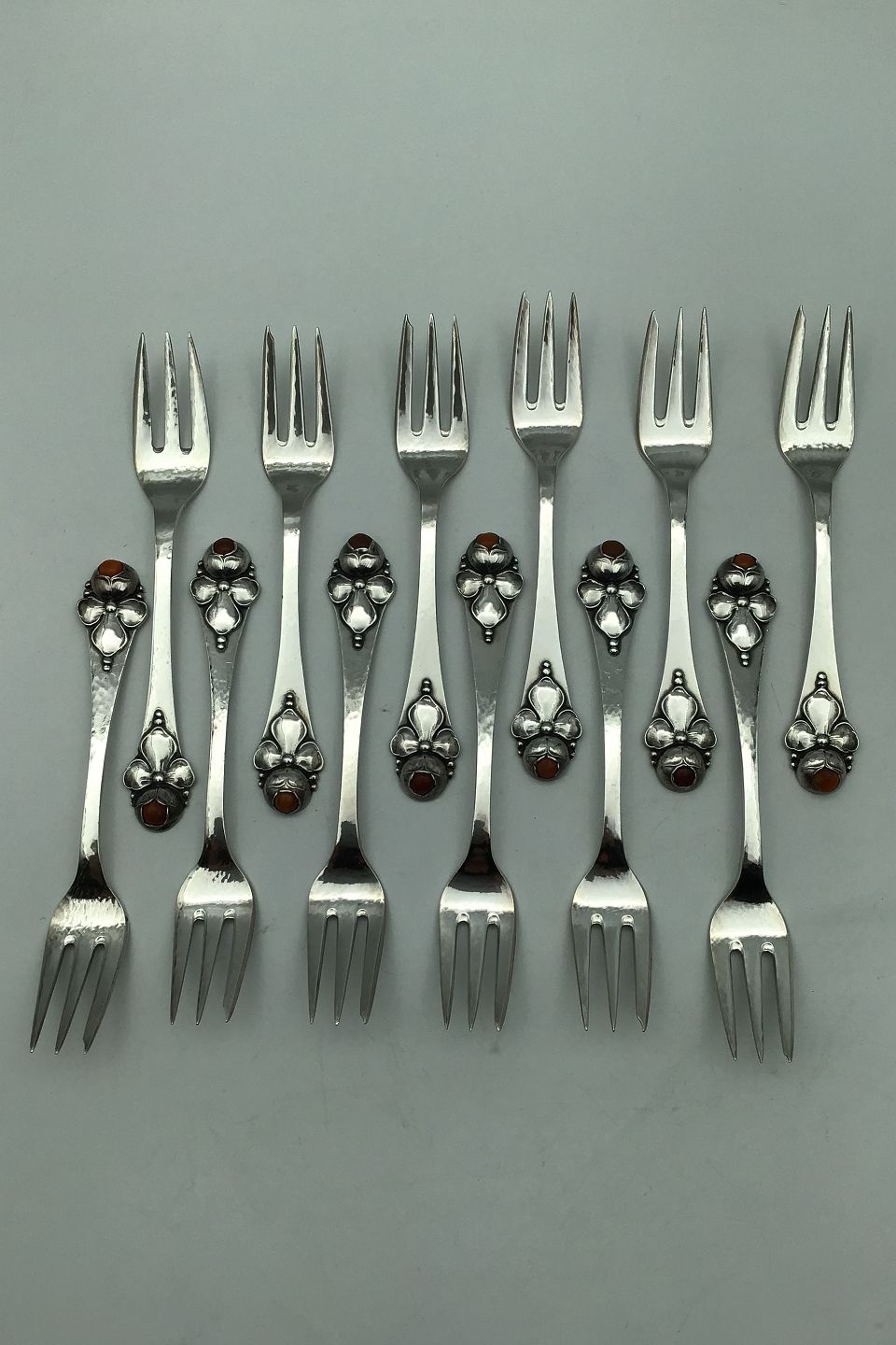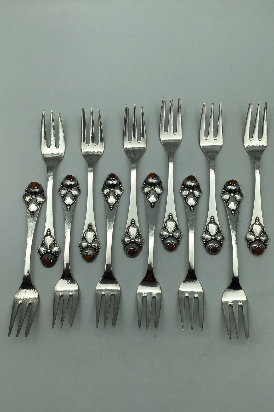 Set Dansk Arbejde (DTA) Silver Pastry Forks with Amber (12) Measures 14.3 cm (5.62 inch)