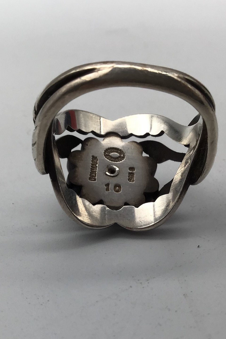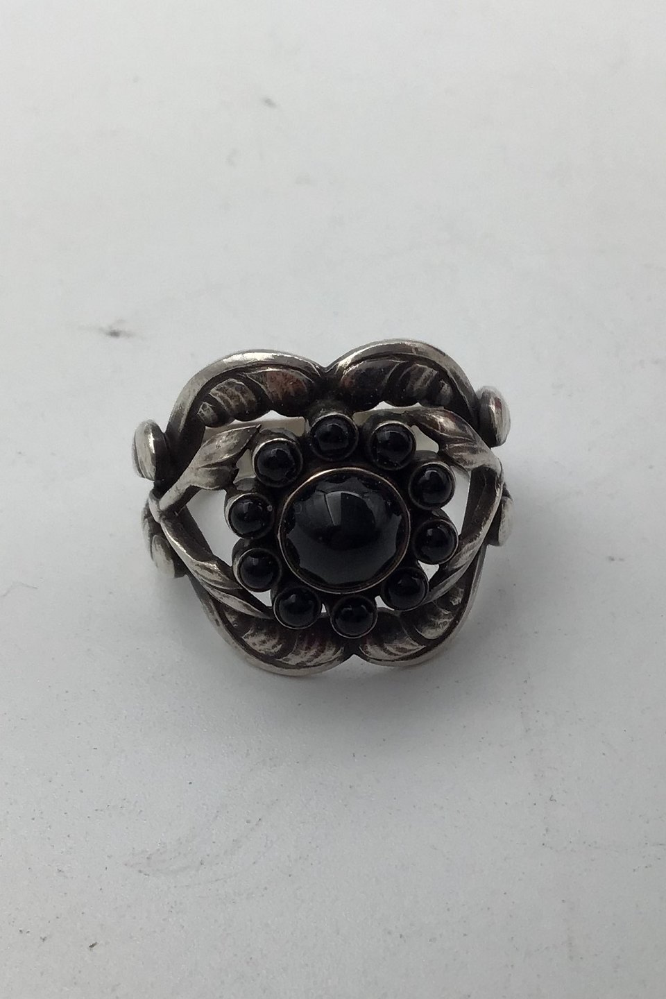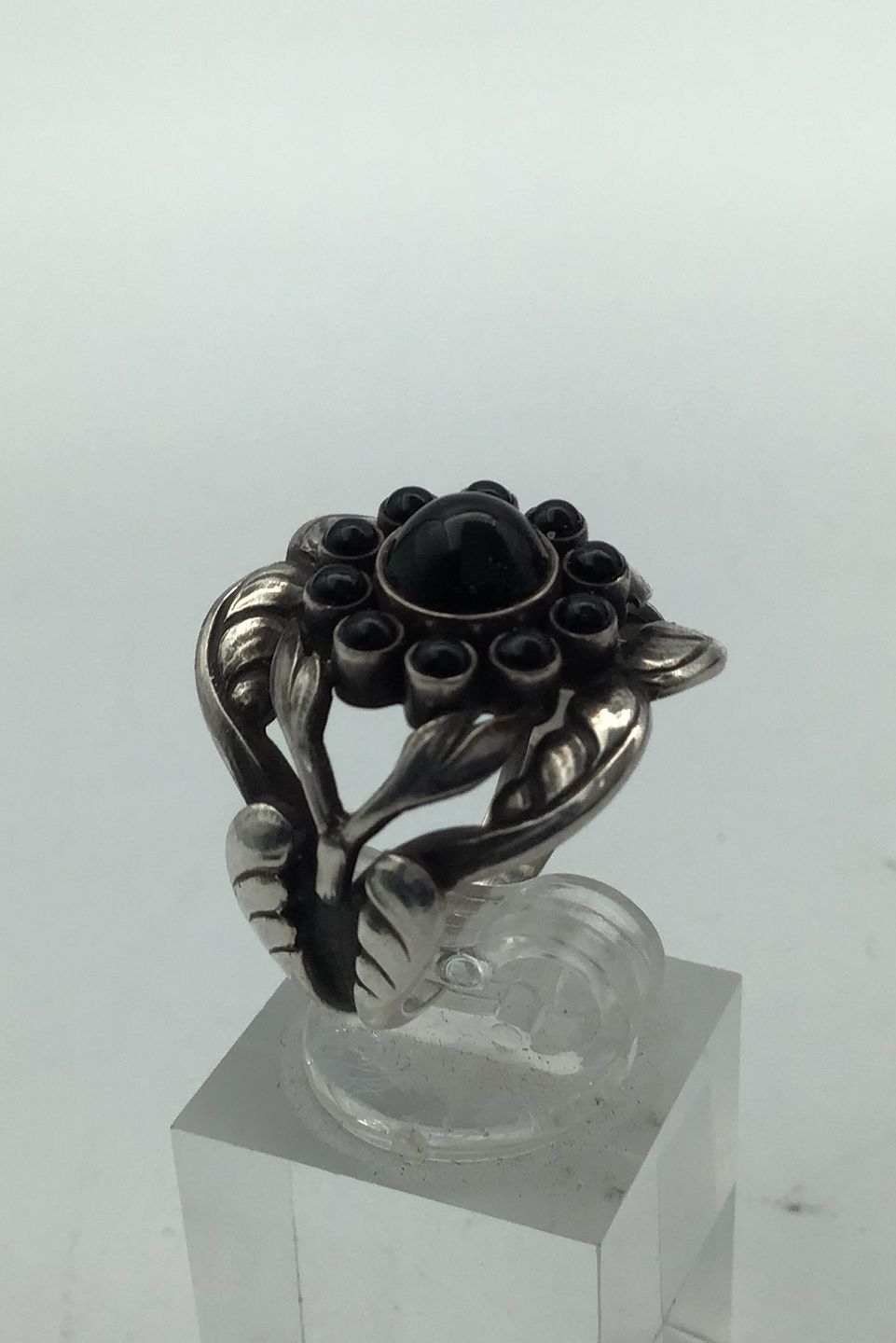 Georg Jensen Sterling Silver Ring No 10 Moonlight Blossom Black Agate. Measures Ring Size 56 (US 7½). Weight 7.1 gr (0.25 oz).