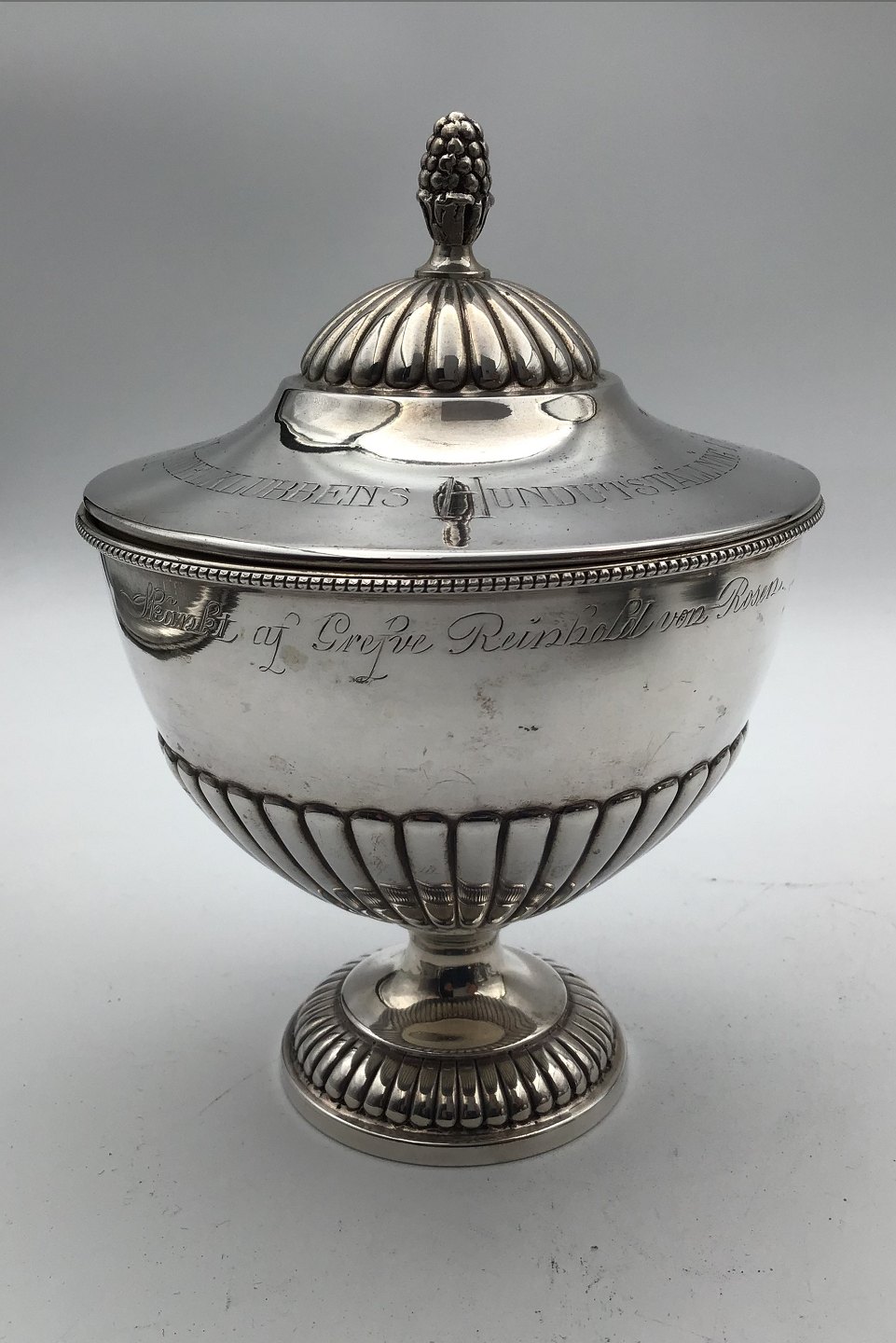 Swedish Silver Lidded Bowl on foot (Prize 1910) Measures H 15 cm (5.90 inch) Diam 10.5 cm (4.13 inch) Weight 166.4 gr (5.87 oz) (Engravings)