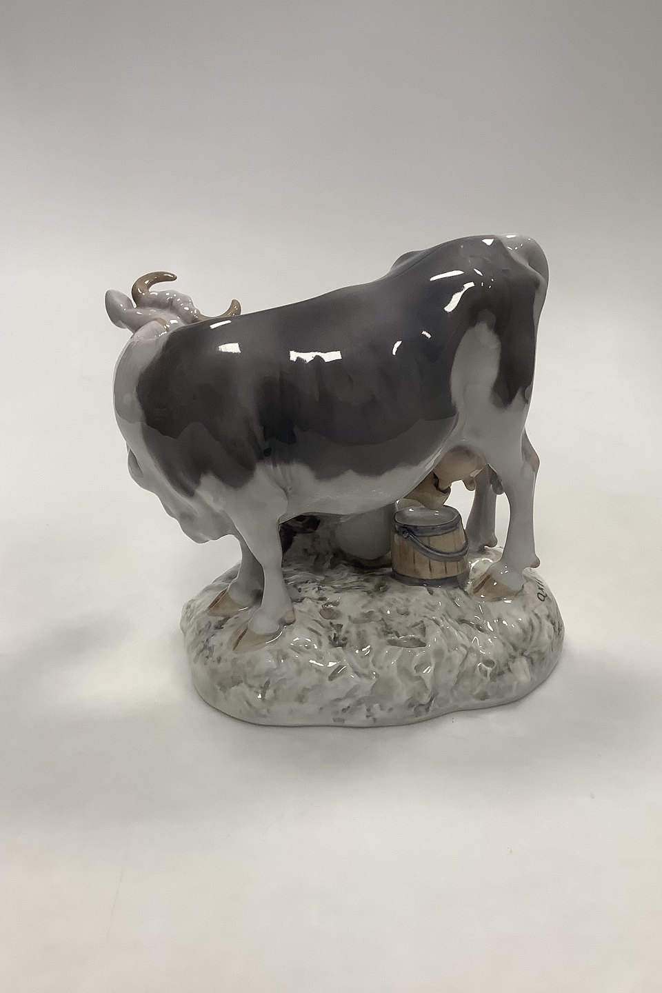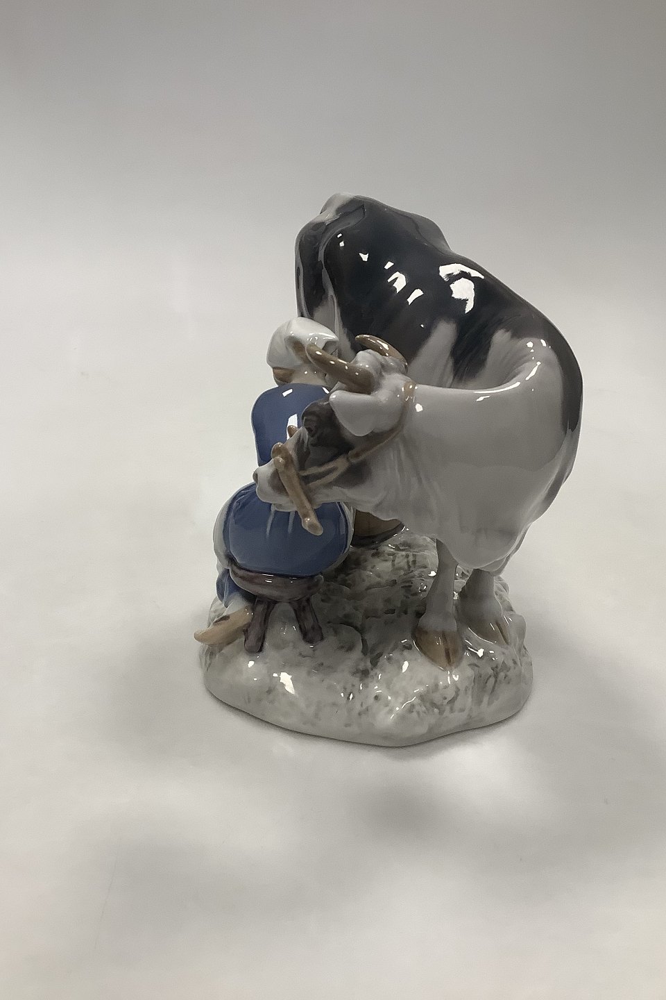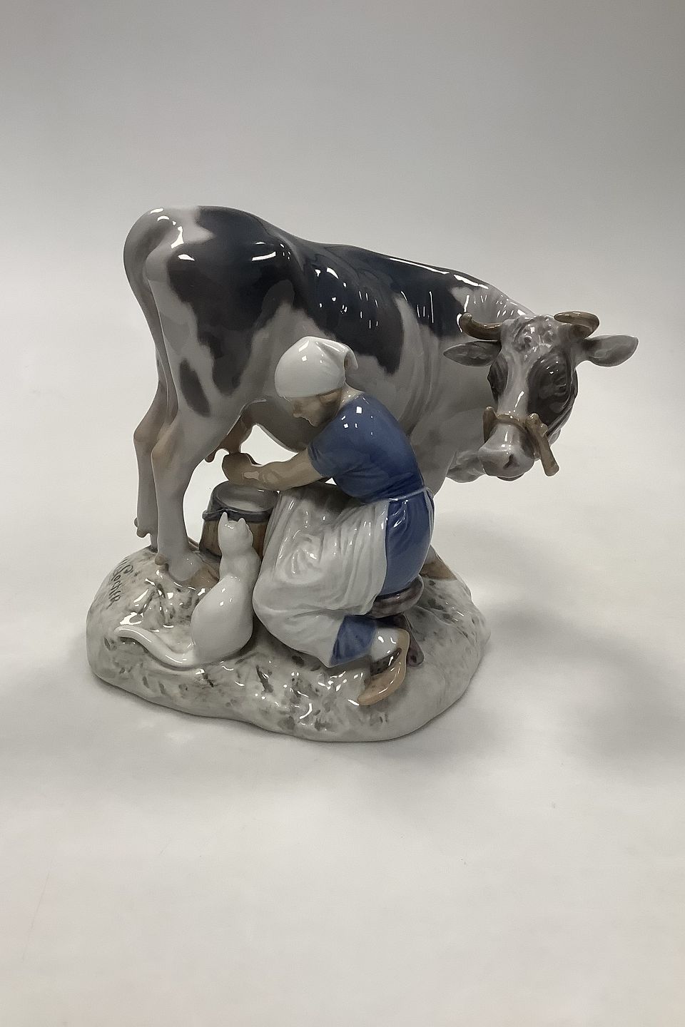 Bing and Grondahl Figurine Dairy Maid, Cow and Cat No. 2017. Designed by Axel Locher.