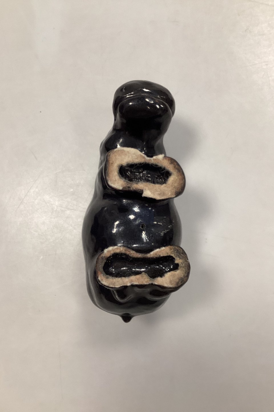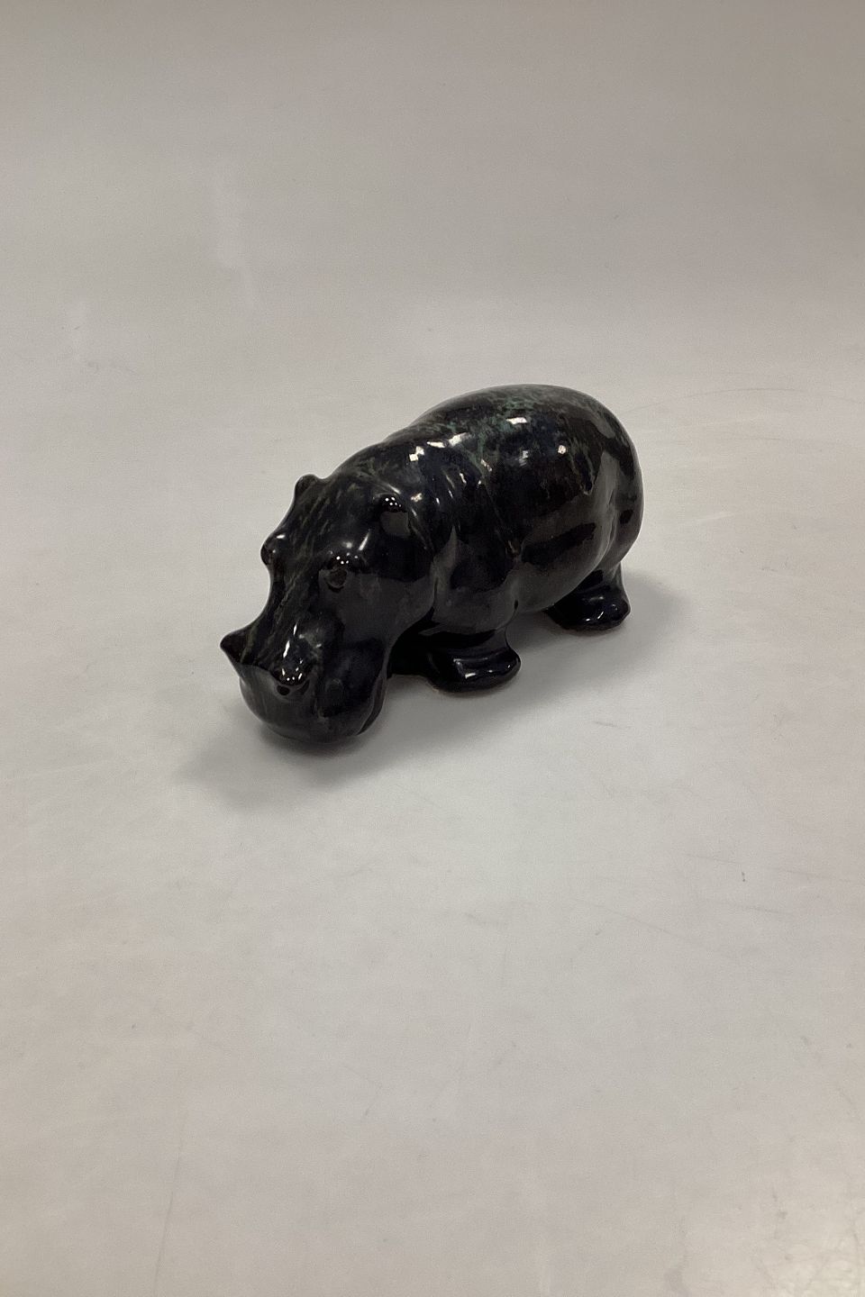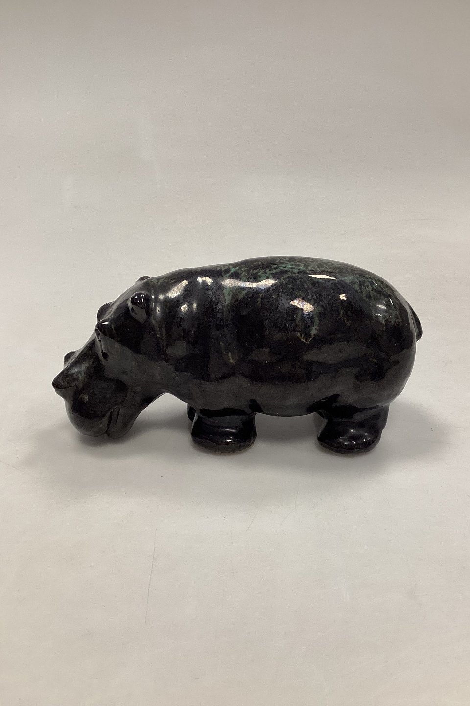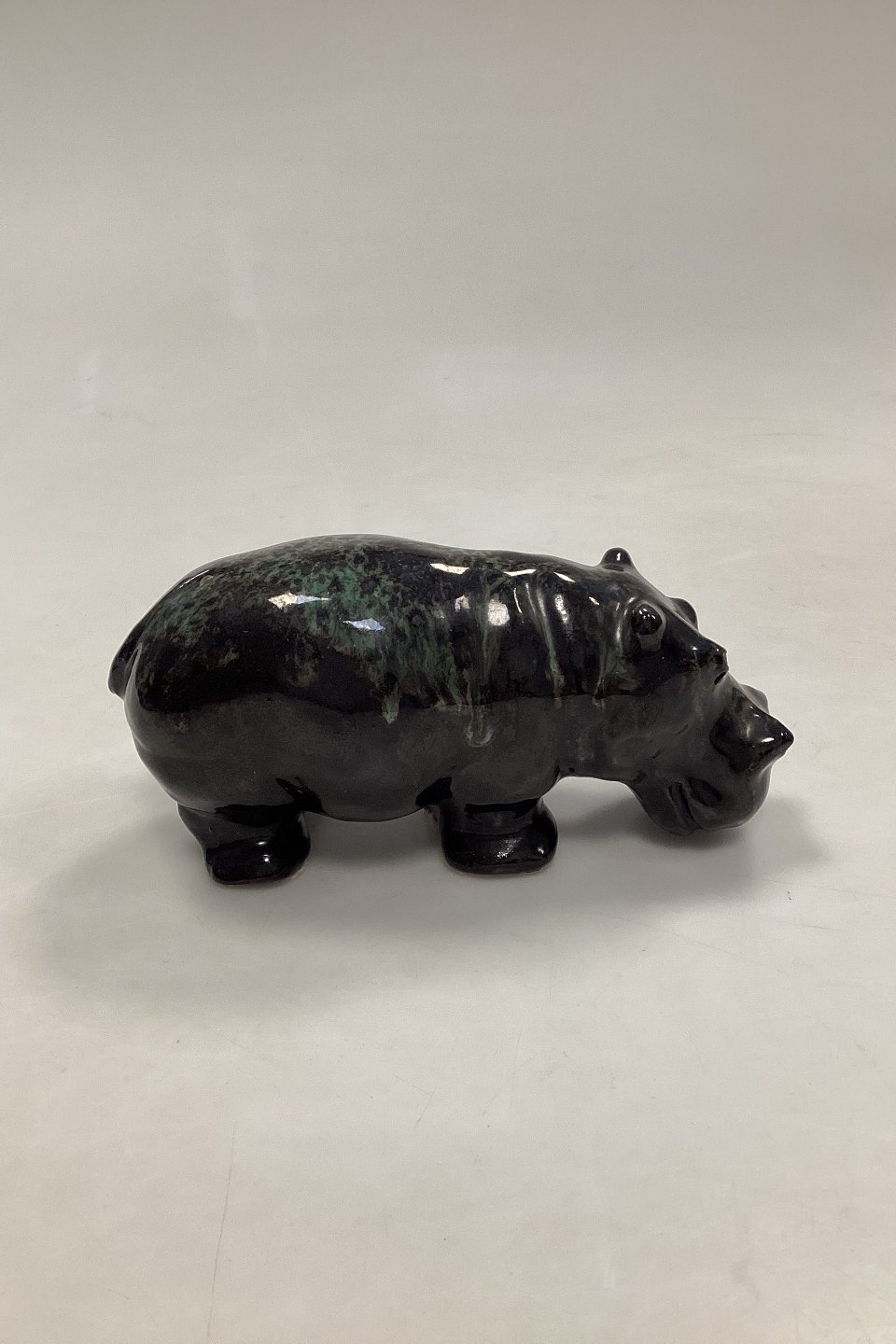 Hippopotamus in Stoneware by Poul Kyhn. Dark-brown and green glazing.