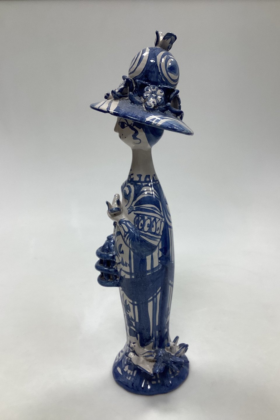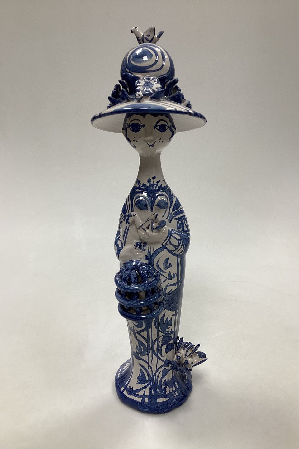 Bjorn Wiinblad figurine from The Four Seasons, Spring No M20. Signed in 1972. Measures 32 cm / 12.6 in. Shows several repairs to head, hat and foot.