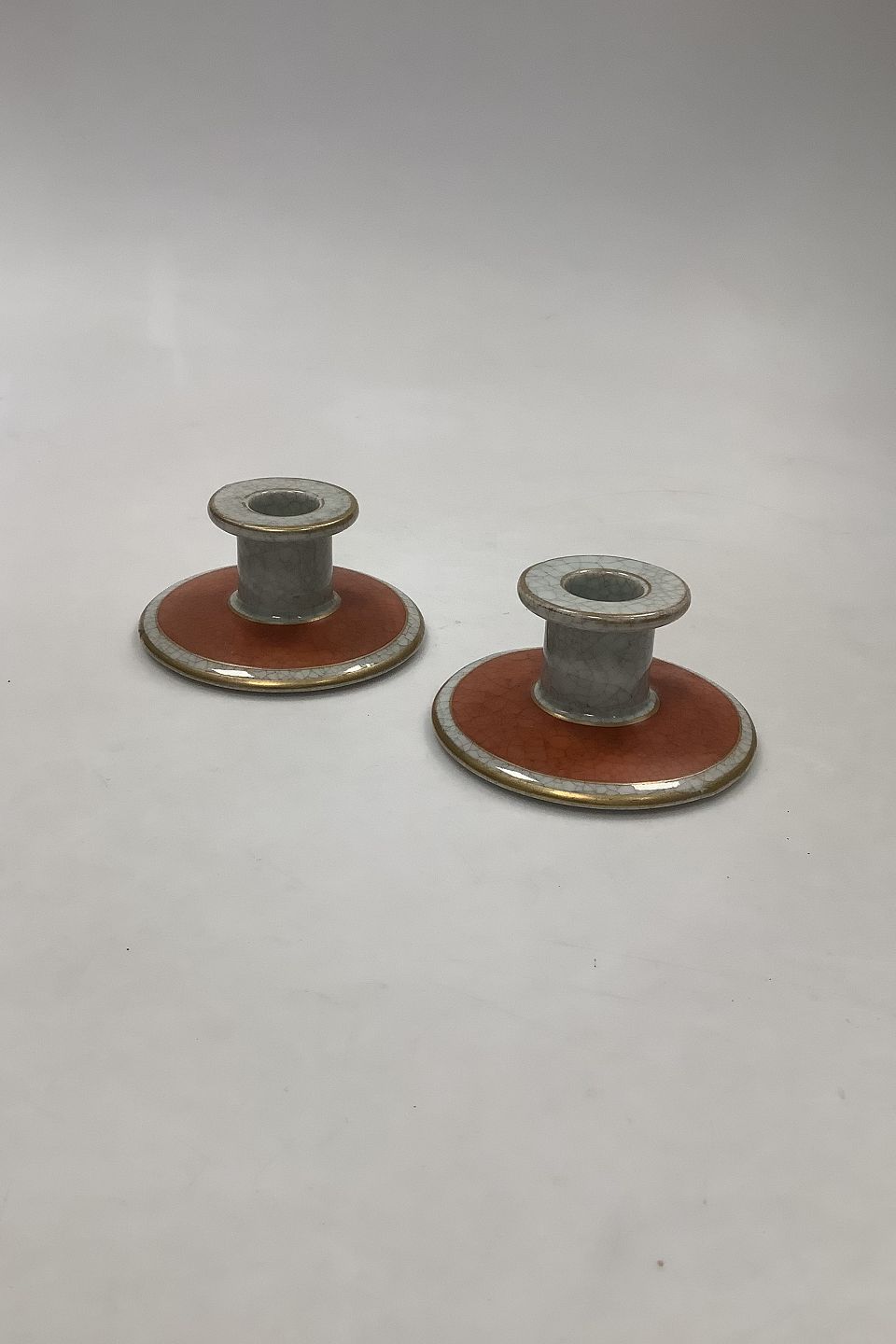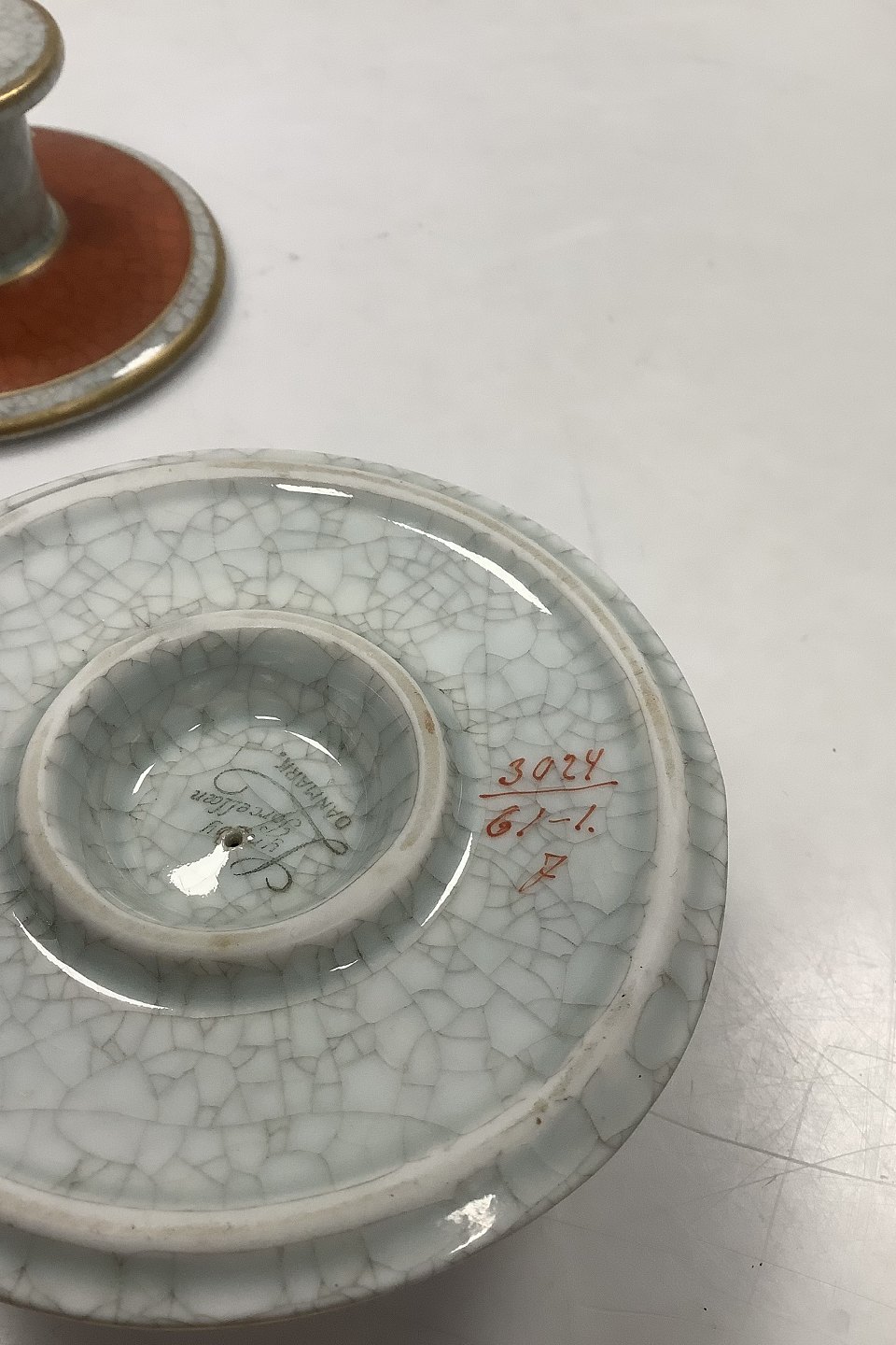 Pair of Lyngby Porcelain Denmark Candlesticks in Red Cracle Glaze No 3024