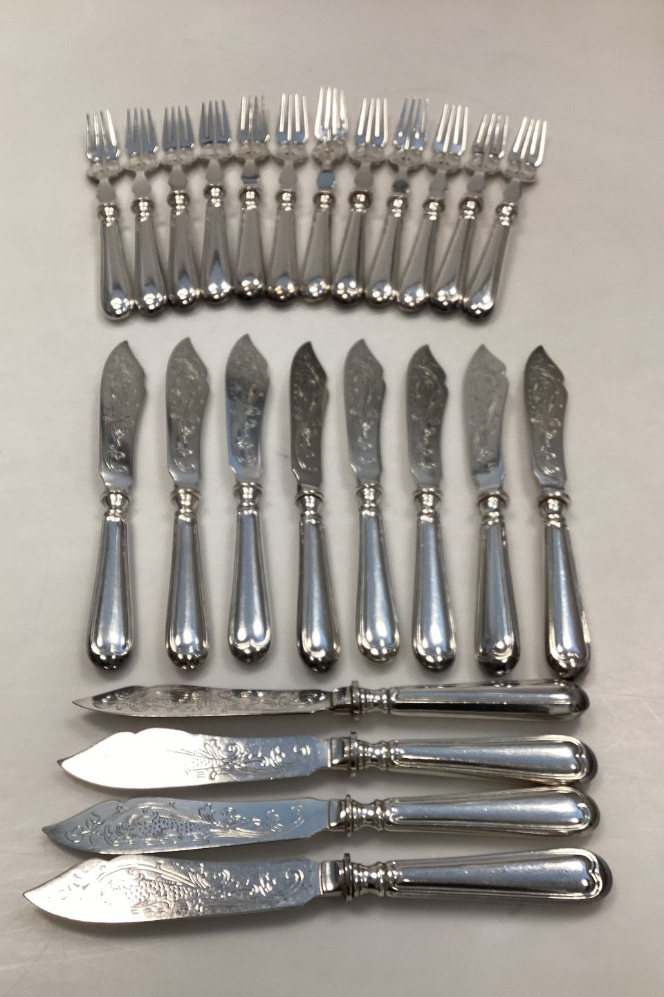 Set of English Silver Plated Fish cutlery for 12 people (24 pcs)