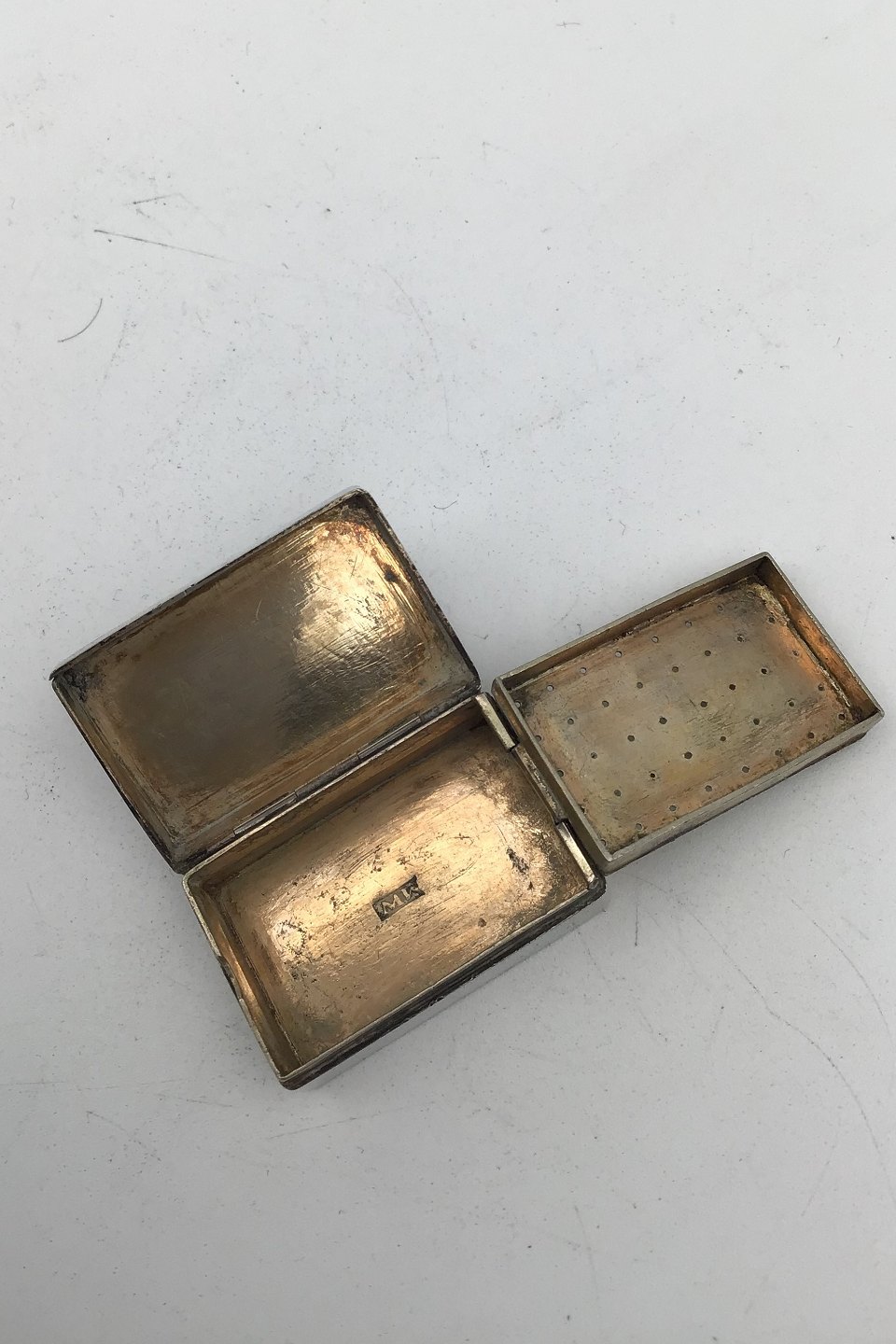 English? Silver Vinaigrette Measures 2.9 cm x 1.9 cm x 1.2 cm (1.4 inch x 0.74 inch x 0.47 inch) Weight 15.6 gr / 0.55 oz (Gilt inside)