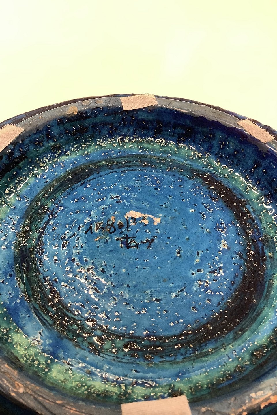 Italy Large Modern Faience / Stoneware bowl in Blue