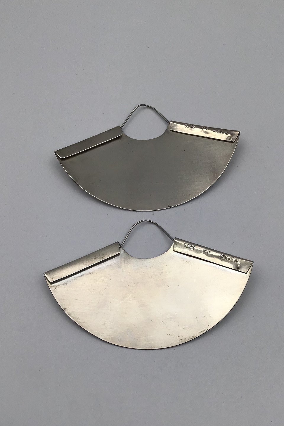 Hans Hansen Sterling Silver Modern Earrings (Gail Spence) Measures Width 7 cm x H 4.5 cm (2.75 inch x 1.77 inch) Combined Weight 16.6 gr / 0.59 oz