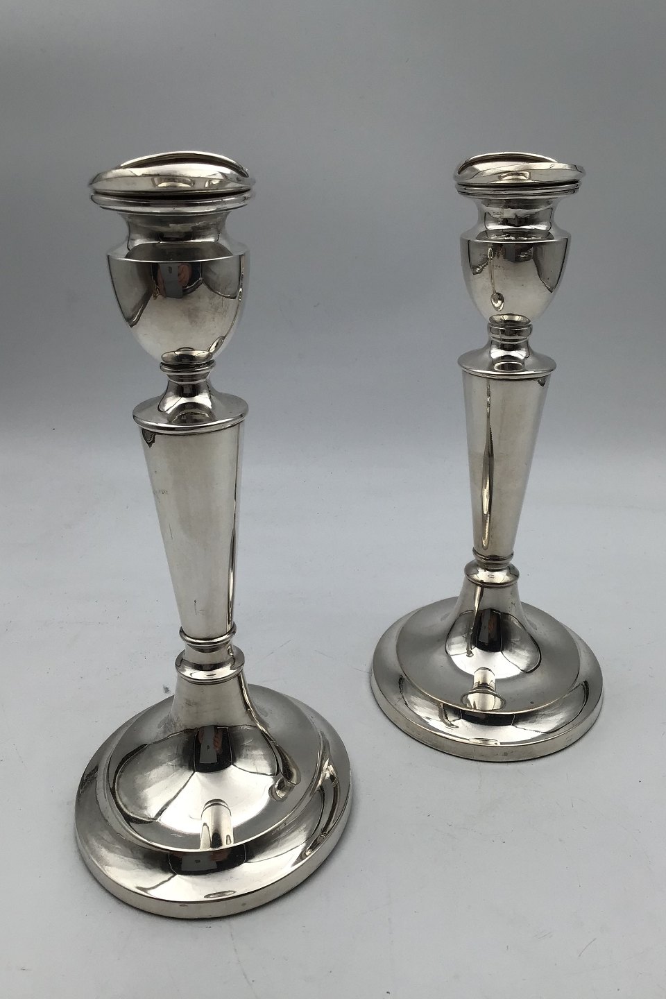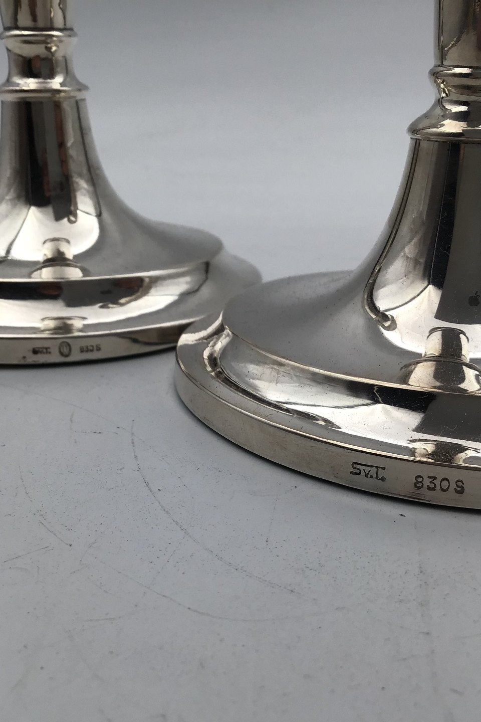 Svend Toxværd Silver Candlesticks (2) Measures H 19 cm (7.48 inch) Combined weight (Weighted) 553 gr. (19.5 oz)