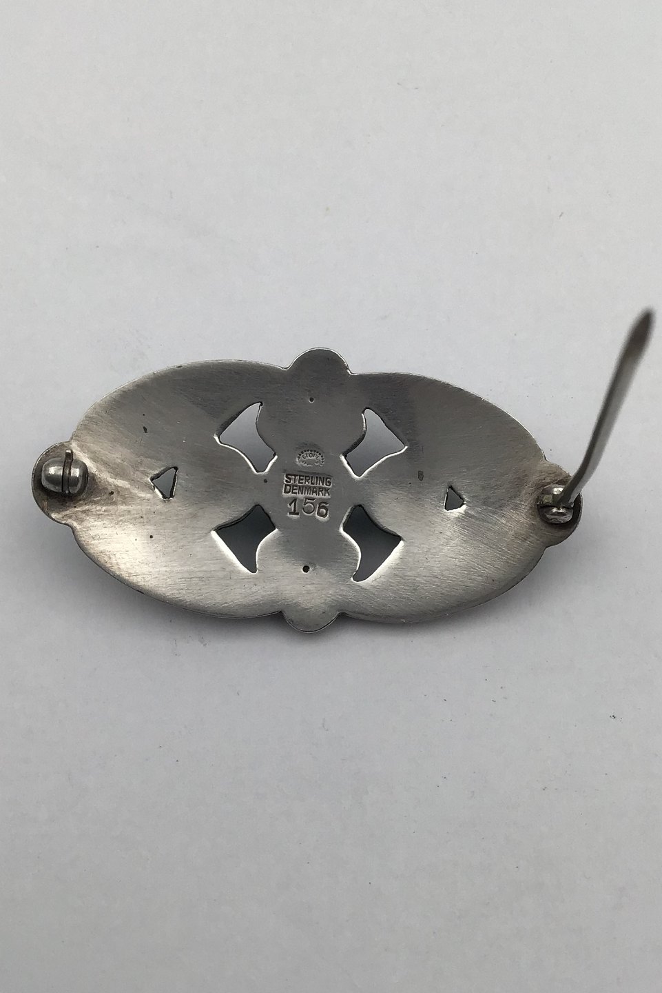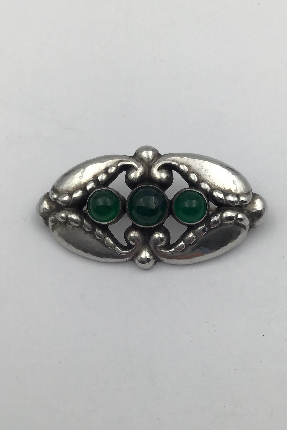Georg Jensen Sterling Silver Brooch No. 156 Green Agate Measures 2.3 cm x 4.3 cm (0.90 inch x 1.69 inch) Weight 7.6 gr (0.27 oz)
