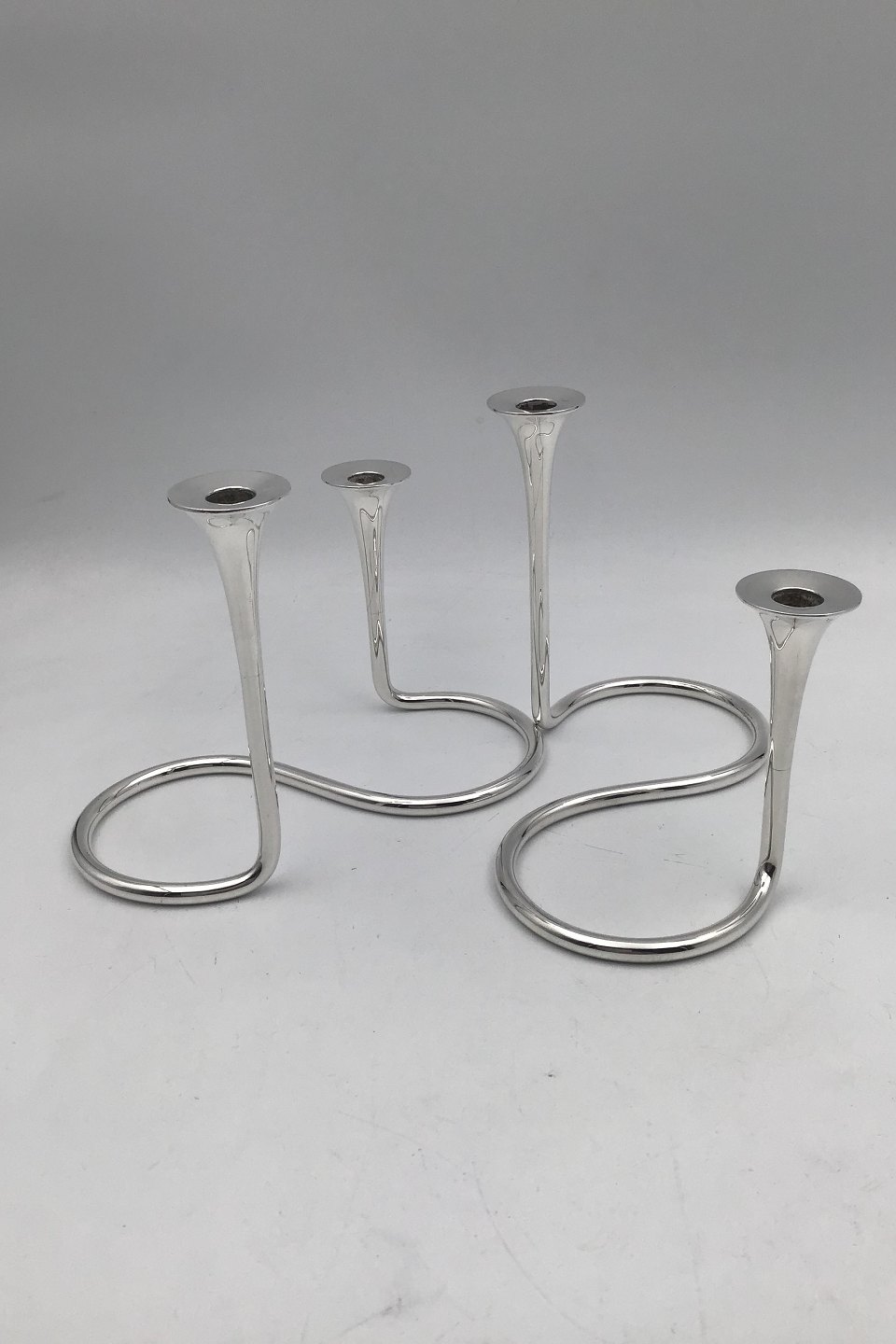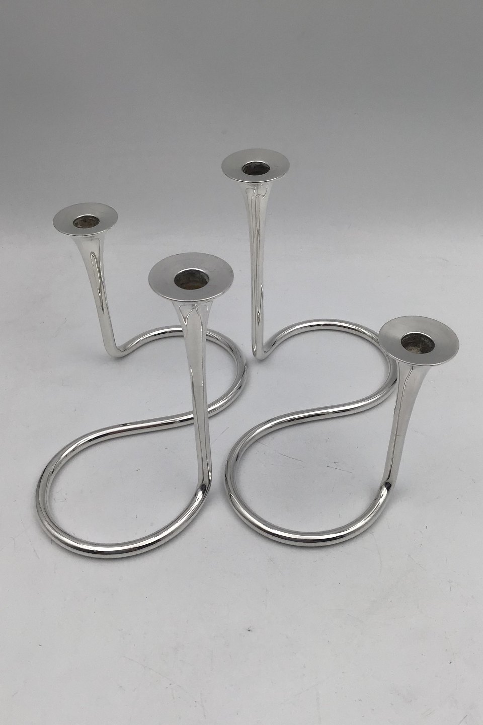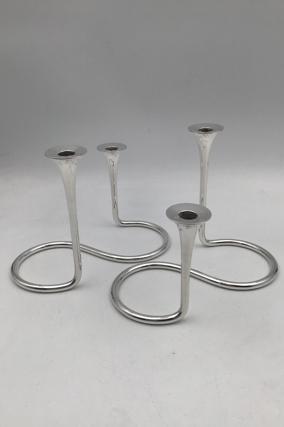 Anton Michelsen Sterling Silver Candle Sticks Eigil Jensen (2) Measures H 12.5 cm (4.92 inch) L 16.5 cm (6.49 inch) Combined Weight 401 gr. (14.14 oz)