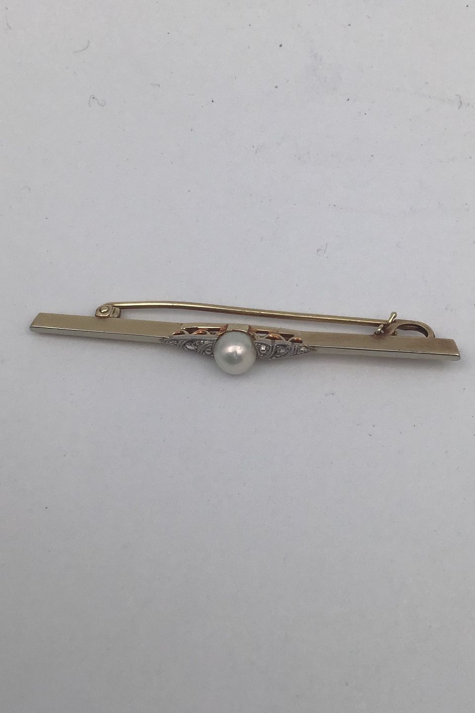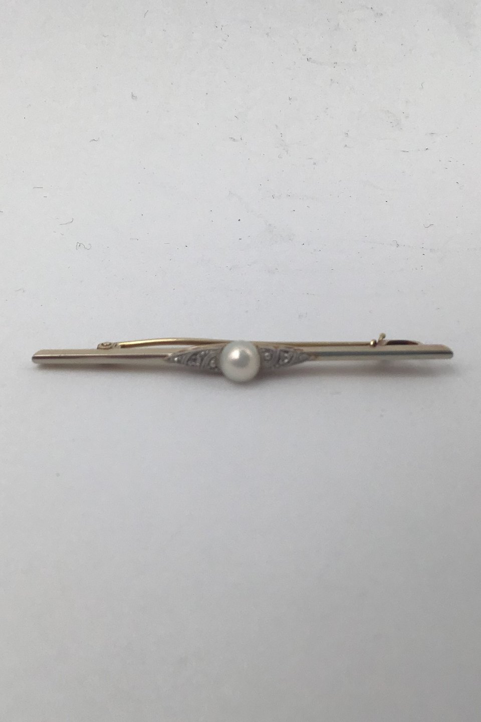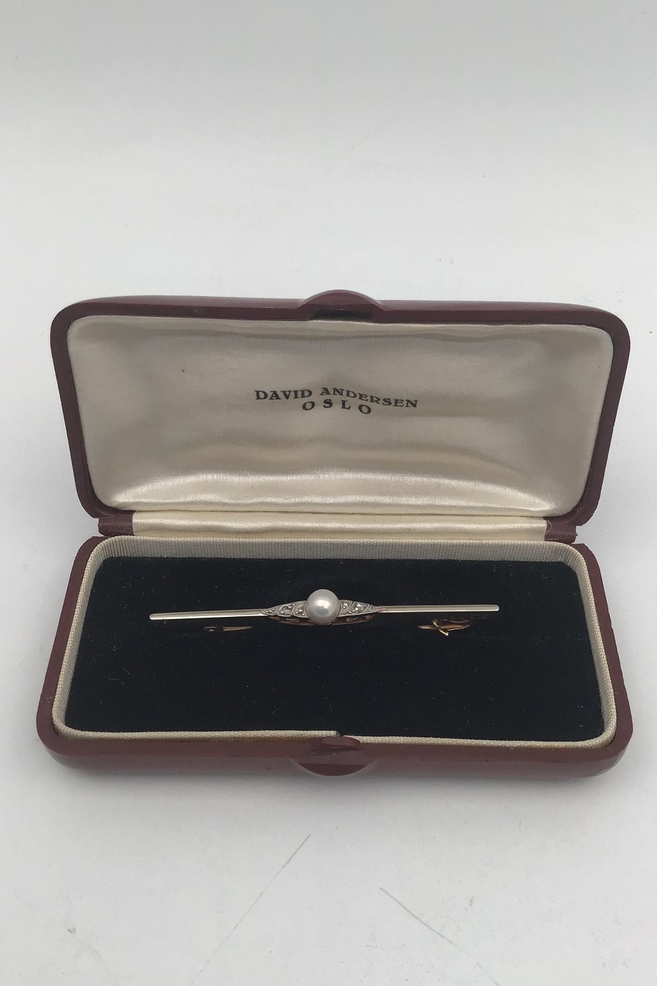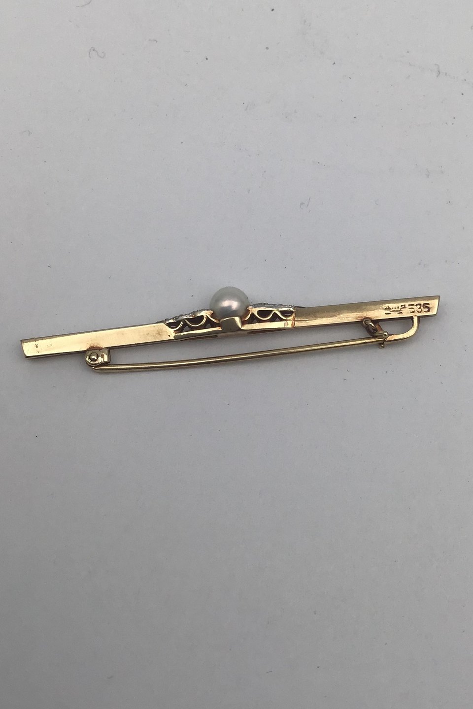 David Andersen 14K Gold Brooch with Pearl Measures 5.4 cm (2.12 inch) Weight 2.4 gr. (0.08 oz) (Box included)
