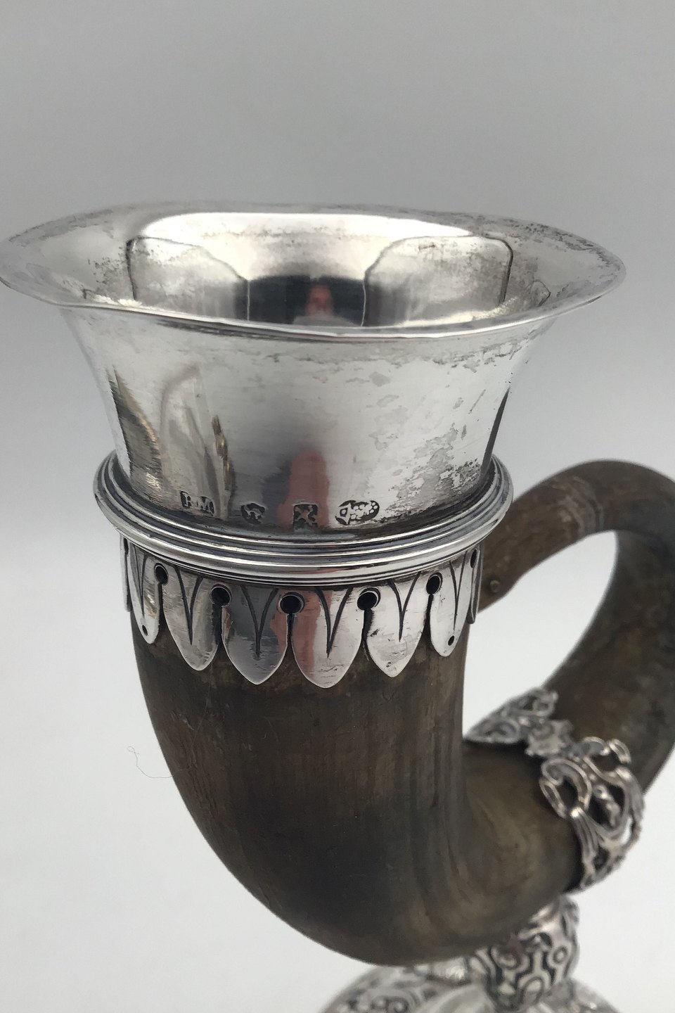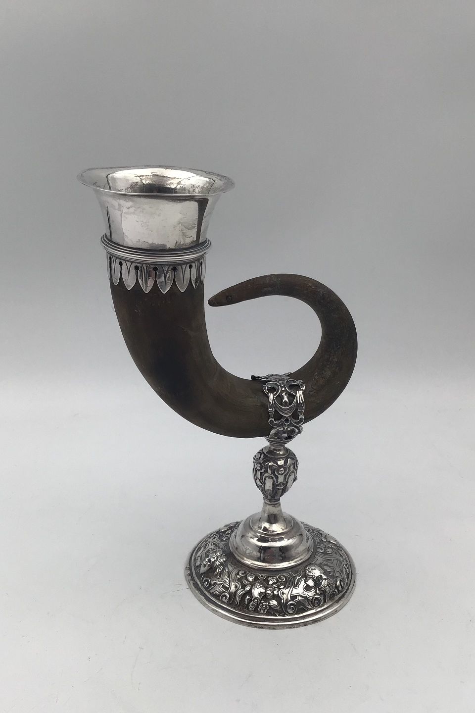 German Silvermounted Drinking Horn (Chamois) Measures H 19 cm (7.48 inch) Total Weight 218 gr. (7.70oz)