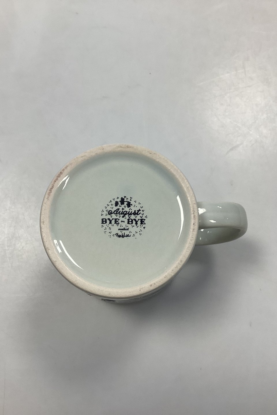 Monthly mug in faience for August - BYE-BYE. Designed by Bjørn Wiinblad for Nymølle. In good condition. The factory mark on the back.