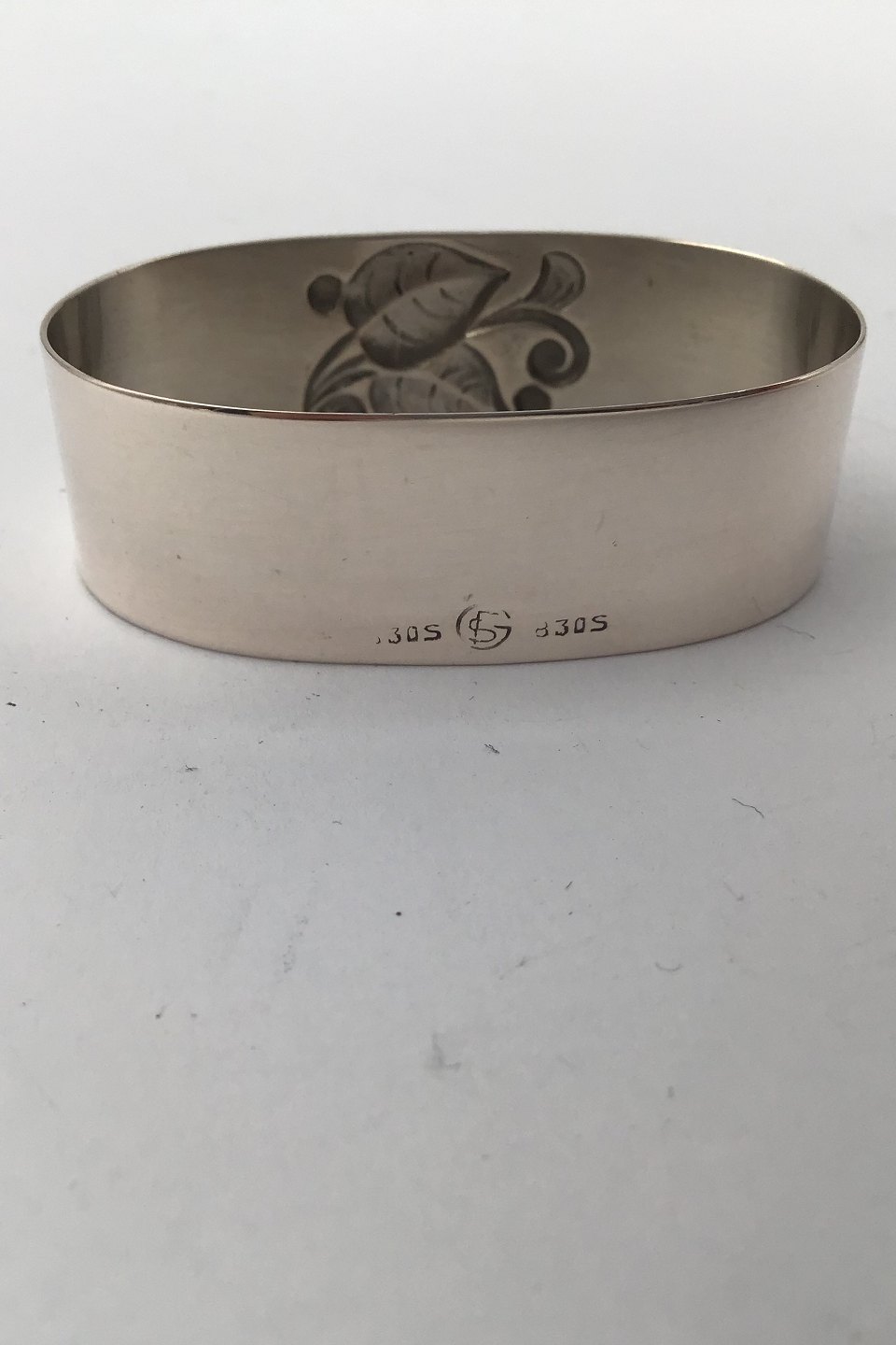 Danish Silver Napkin Ring (Foliage) Measures H 1.5 cm (0.59 inch) 3 cm x 4.8 cm (1.18 inch x 1.88 inch) Weight 10.9 gr (0.38 oz)