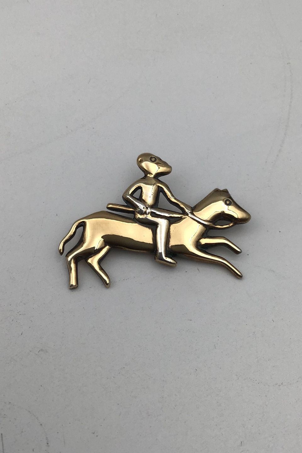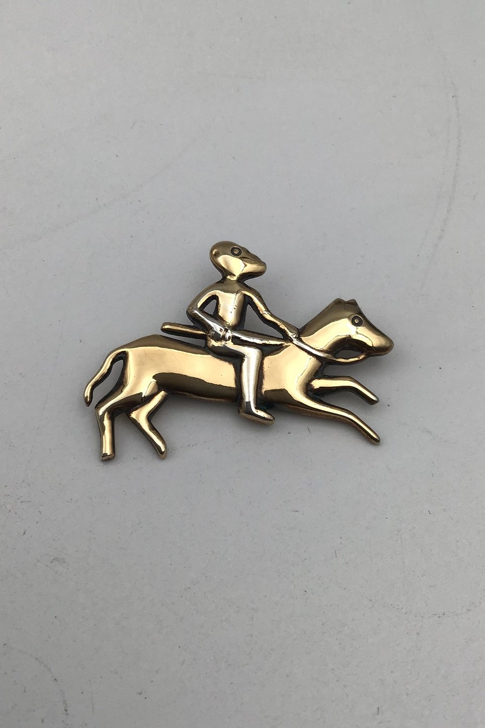 F. Hingelberg Gilt Sterling Silver Brooch (Guldhornsmotiv 1639) Measures 2.5 cm x 4.7 cm (0.98 inch x1.85 inch) Weight 16.3 gr (0.57 oz)