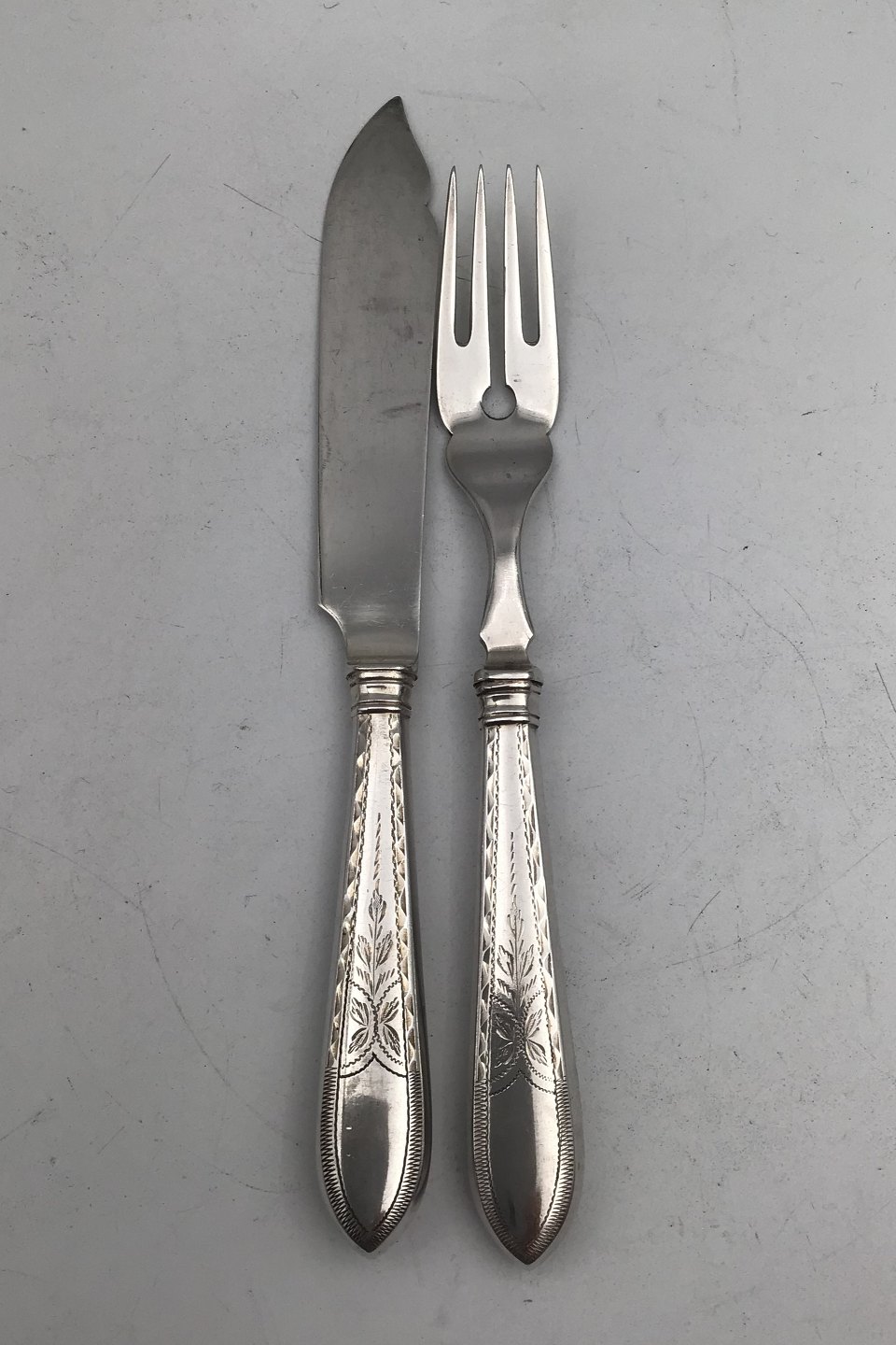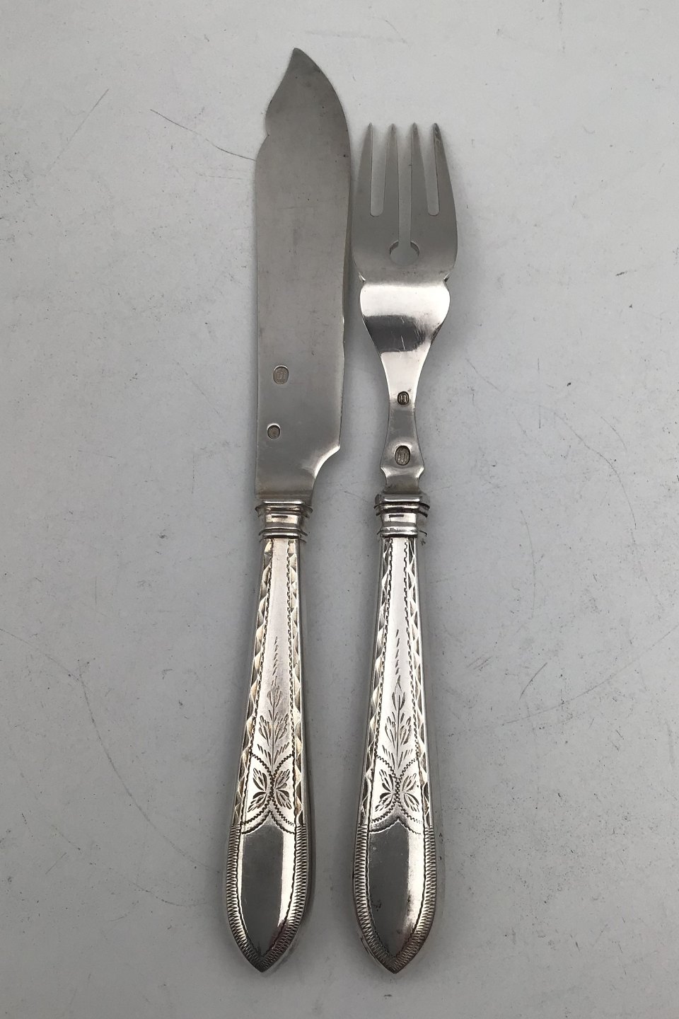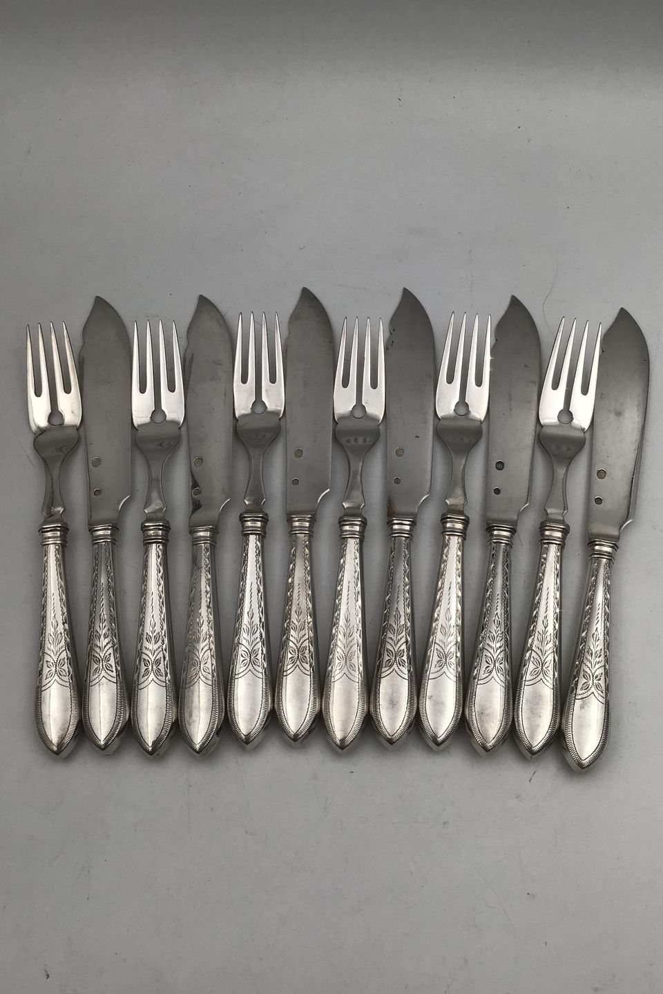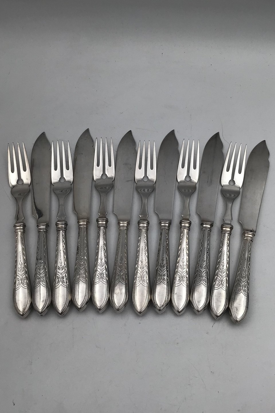 Danish Empire Silver Fish Flatware Set (12) Measures Fork 19 cm (7.48 inch) Knife 21 cm (8.26 inch) (All silver)