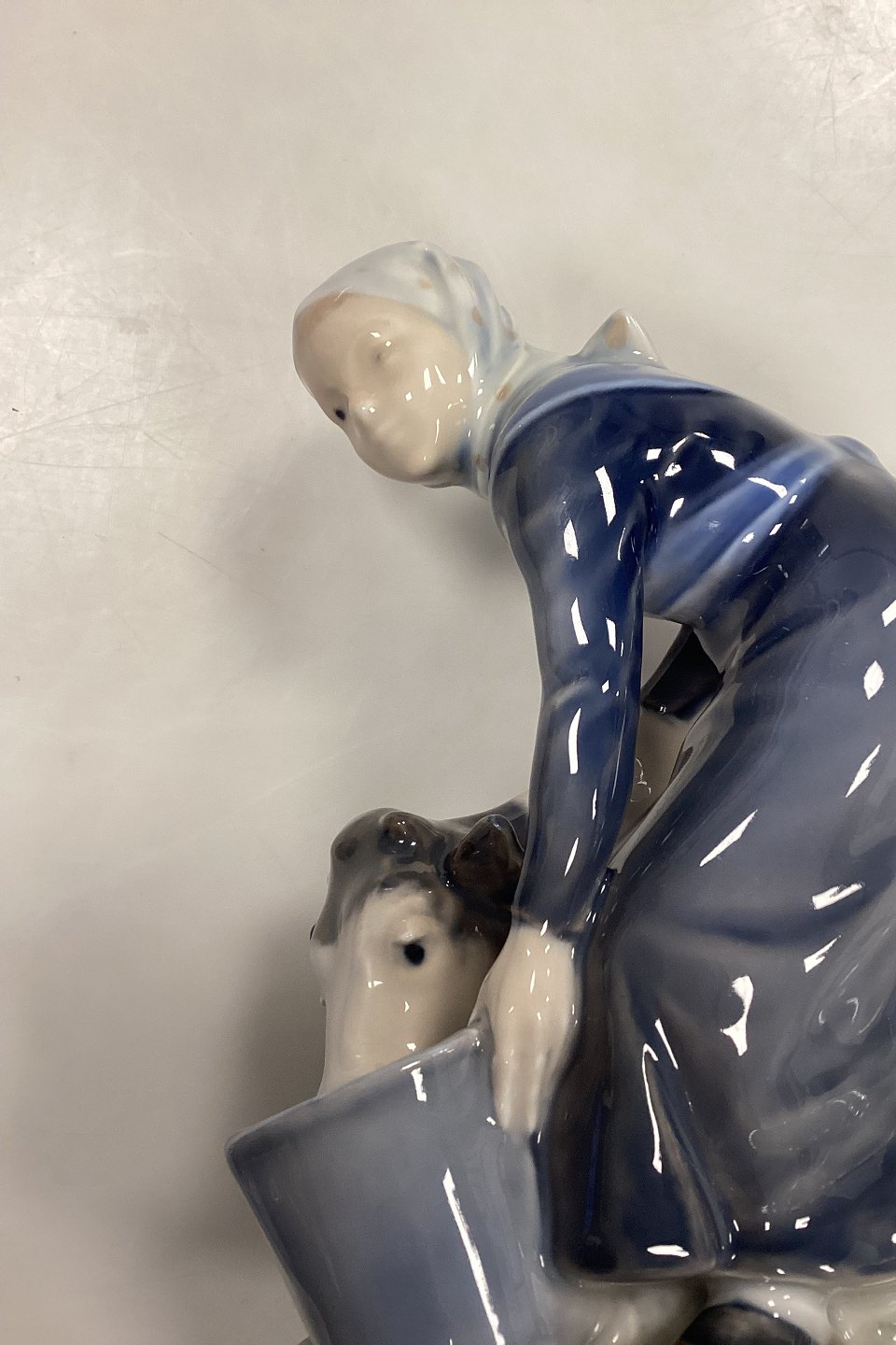 Royal Copenhagen Figurine Girl with Calf No. 779. Measures 16 cm x 17 cm (6 19/64 in. x 6 11/16 in.) Designed by Christian Thomsen.