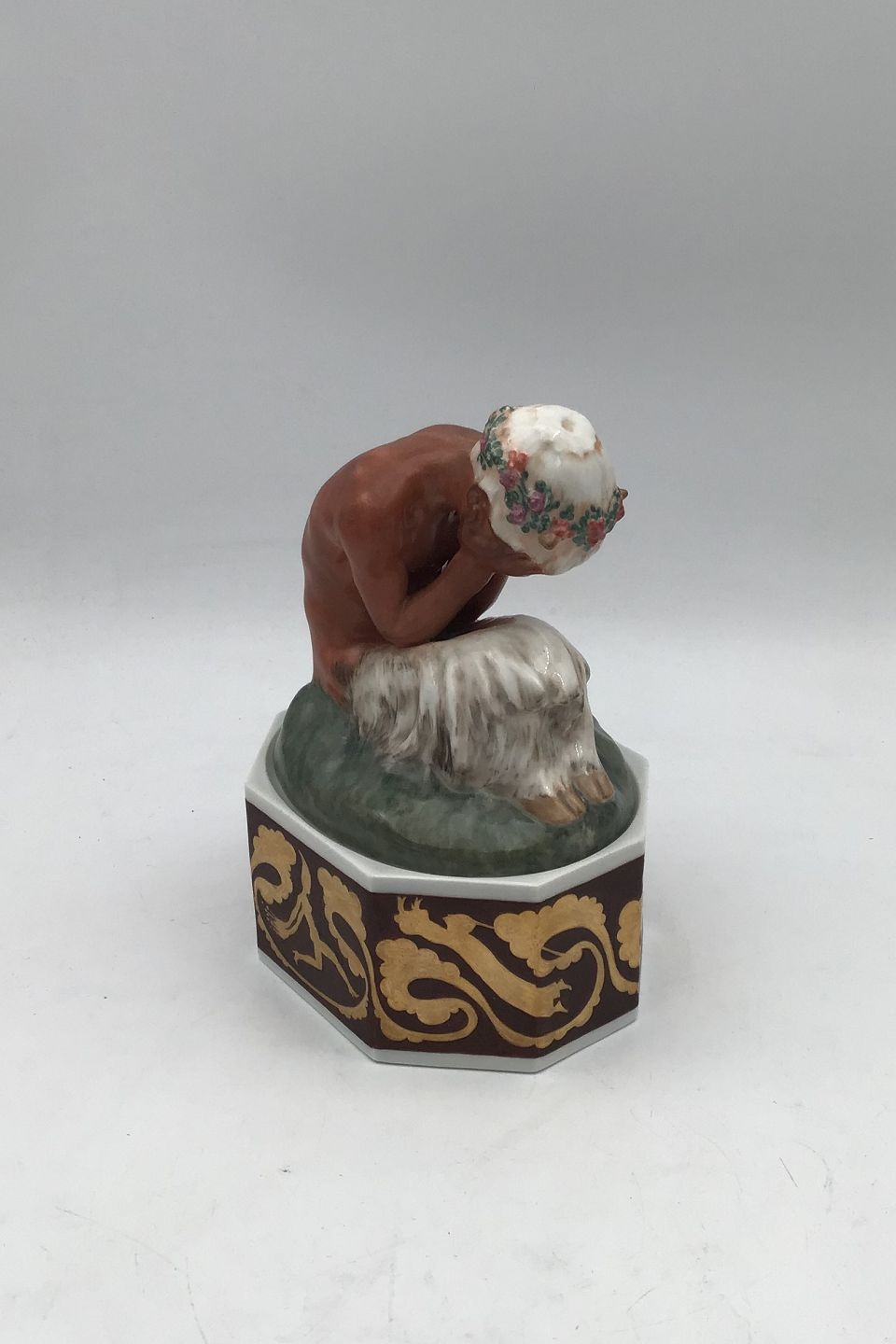 Royal Copenhagen Gerhard Henning Overglaze Figurine Weeping Faun on stand No. 1188