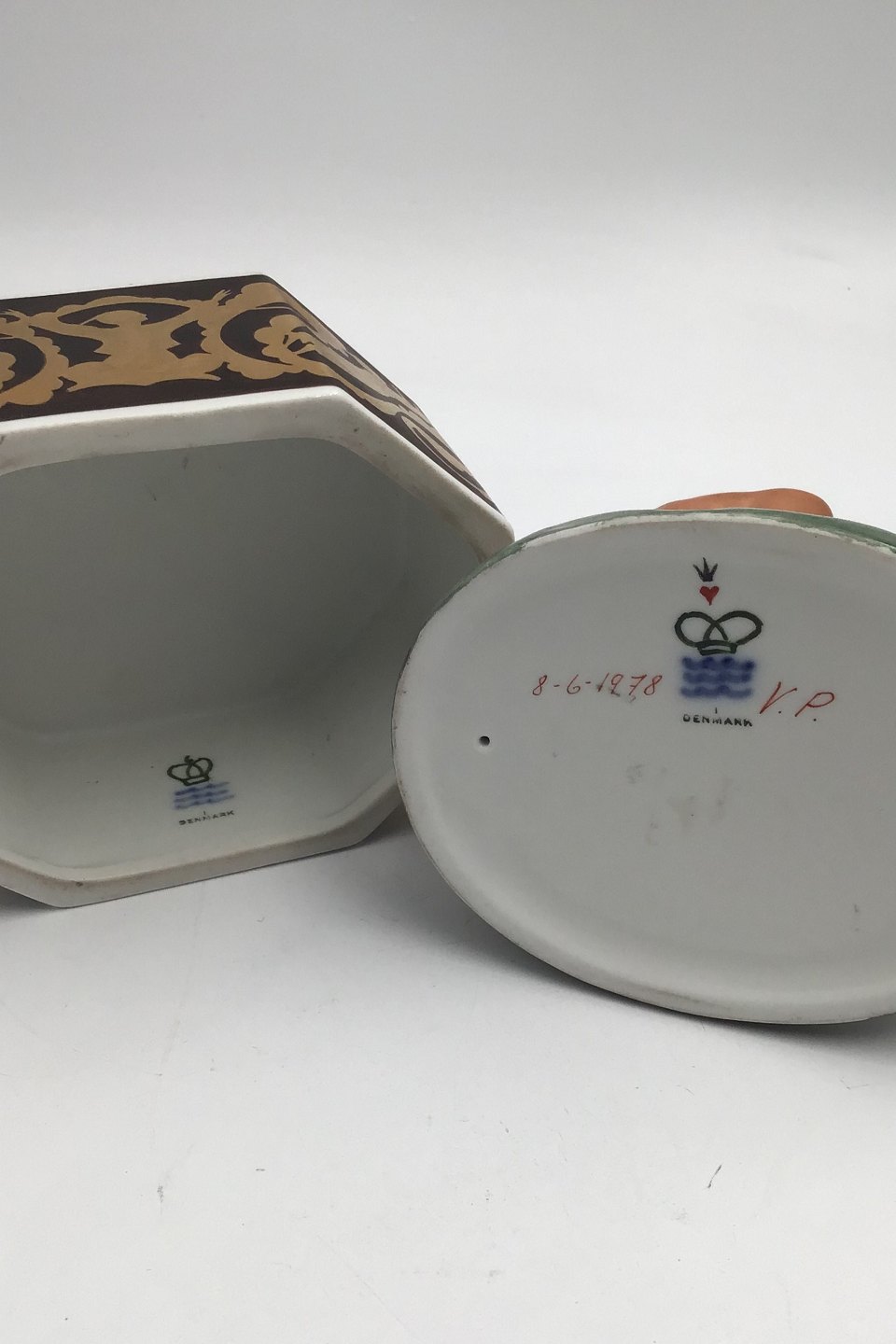 Marks: (underglaze blue wave), (crown), VP., 8-6-1978, (crowned heart)