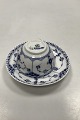 Royal Copenhagen Blue Fluted Half Lace Cup and Saucer No 713. Cup measures 8.5 cm dia / 3 11/32 in. and 5 cm H / 1 31/32 in. 2nd or 3rd Quality, some with black specks.