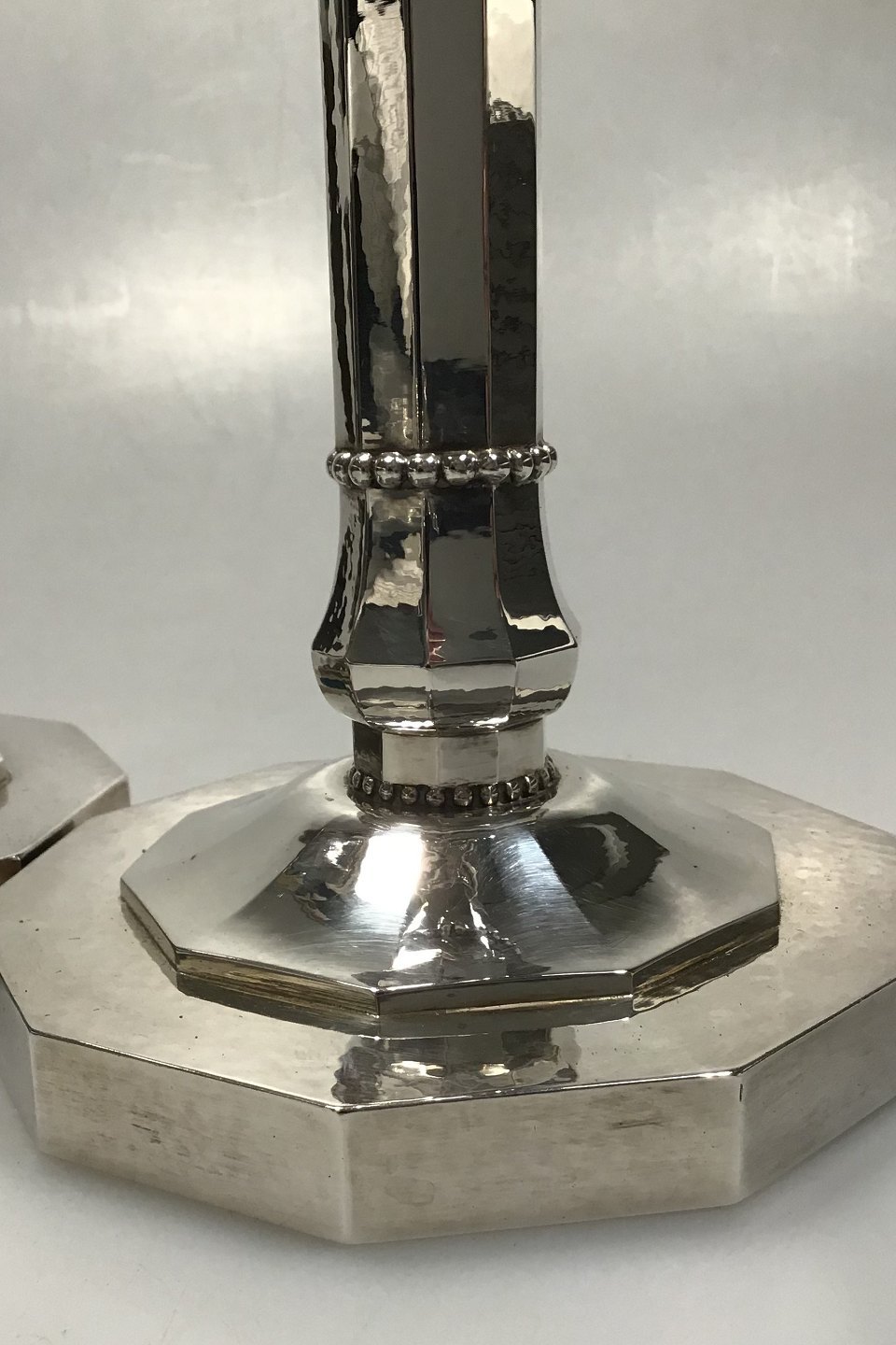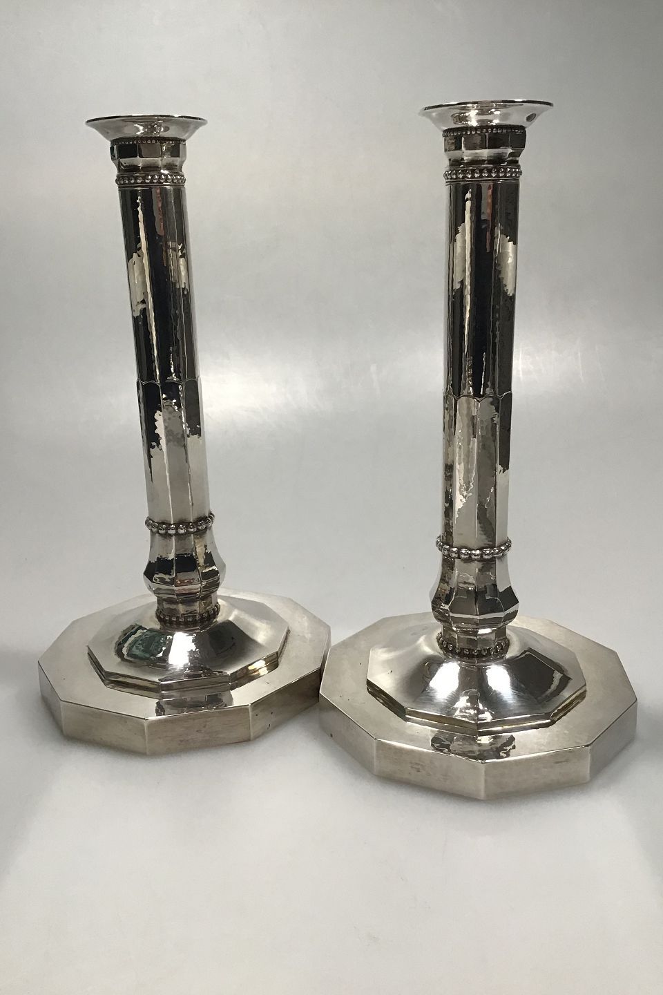 Georg Jensen Sterling Silver Candlesticks No. 286 Johan Rohde Measures 23 cm (9.05 in) Base Diam 12.3 cm (4.84 inch) Weight 1197 gr / 42.20 oz