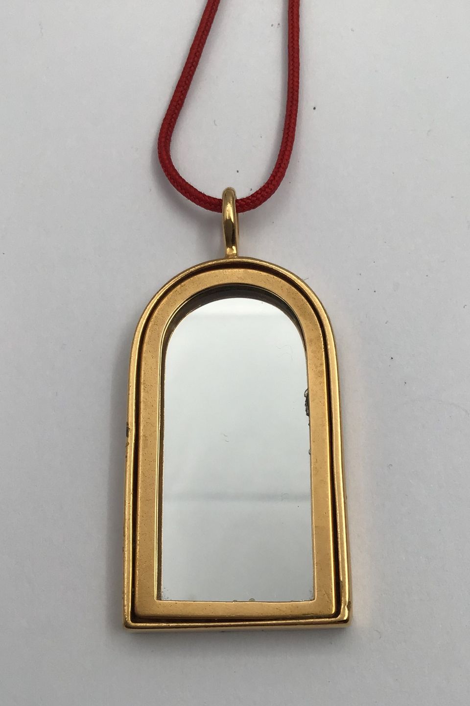 Georg Jensen Gilded Brass Window Pendent No. 5201 Measures 5.5 cm x 2.5 cm (2.16 inch x 0.98 inch) Design by Ole Bent Petersen (Original Red GJ String 52 cm (20.47 inch))