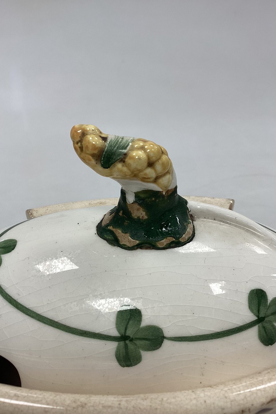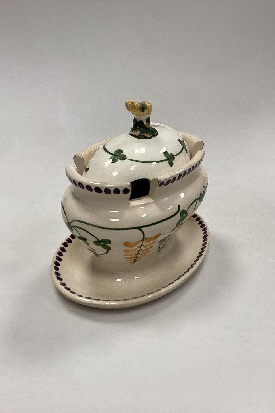 Aluminia Guldregn (Laburnum) Sauce Bowl on fixed base and with lid No. 10/298. Lighter wear, and repair of the handle on the lid.
