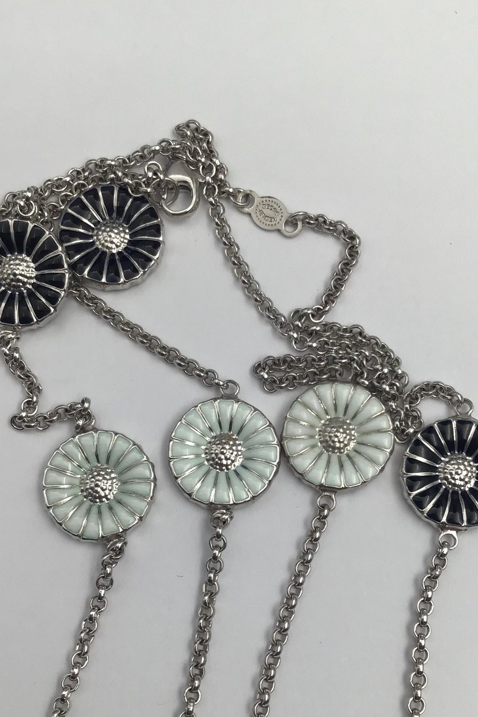 Georg Jensen Sterling Silver Gilt Daisy Necklace Black / White Enamel