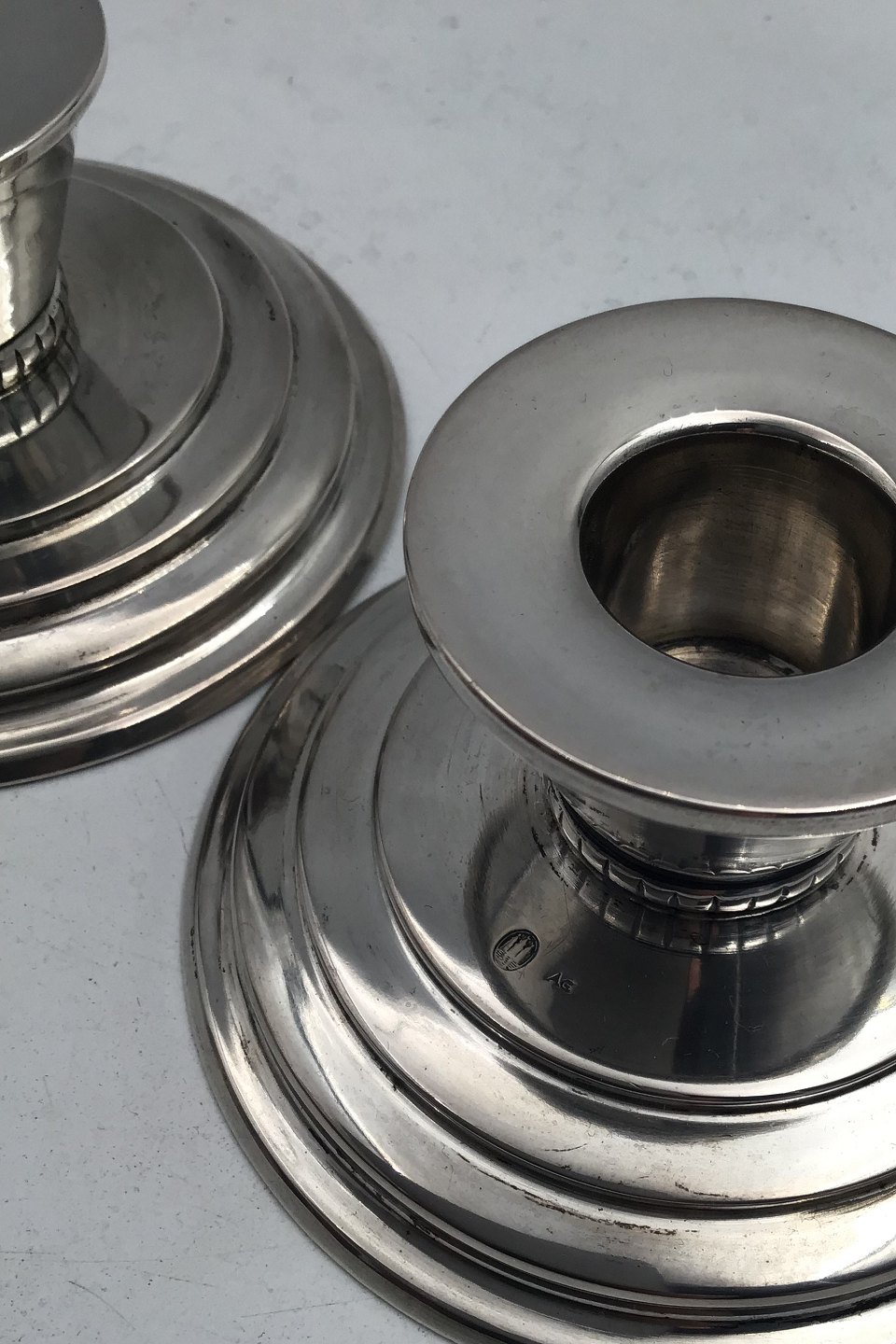 Godtbergsen Silver Candlesticks (2) Measures H 5 cm Diam 10 cm Combined weight 348.5 gr. (11.21 oz) (Filled)