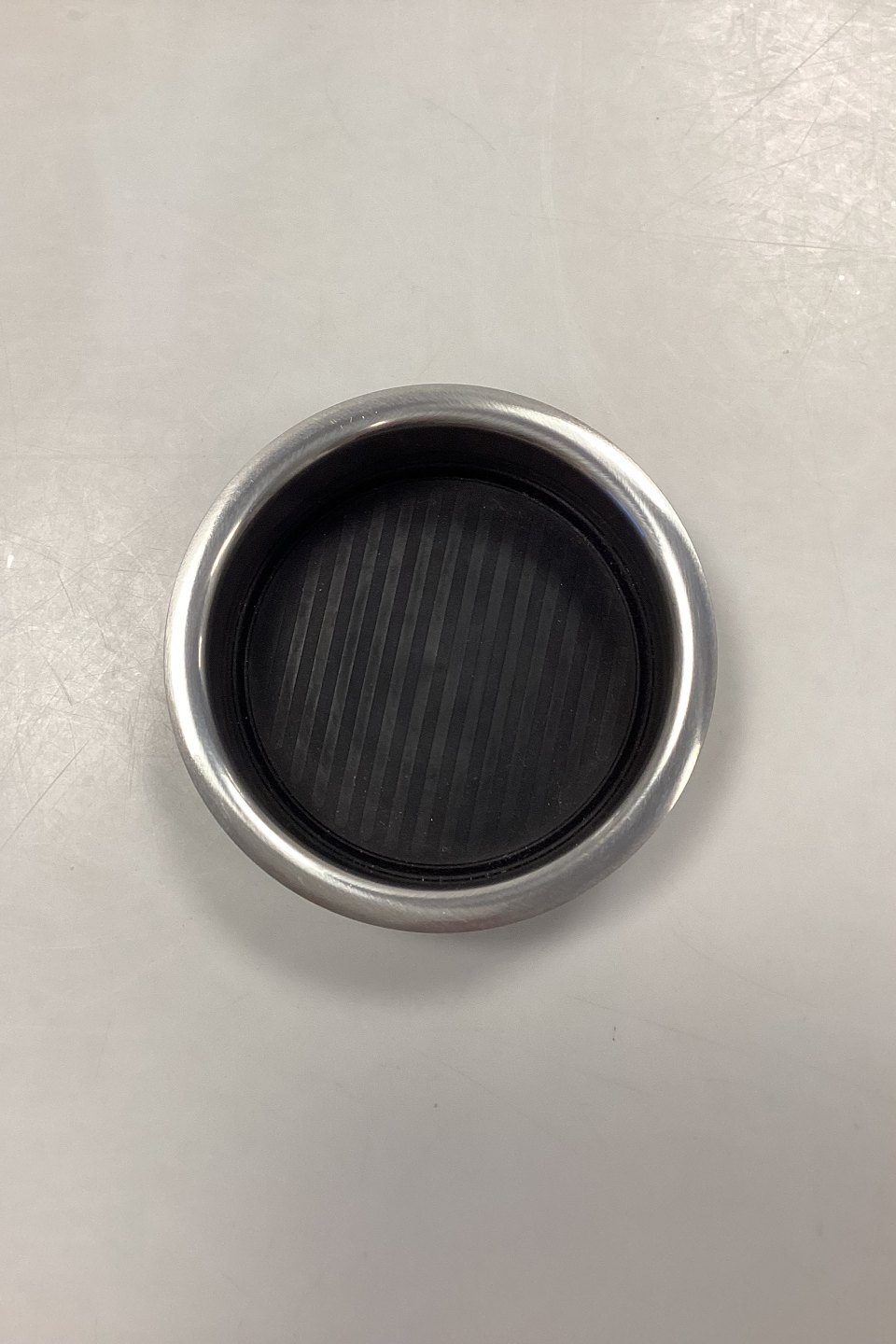Stelton Stainless Steel Bottle Tray with rubber bottom. Measures 3.5 cm x 11.8 cm / 1.38 in. x 4.65 in.