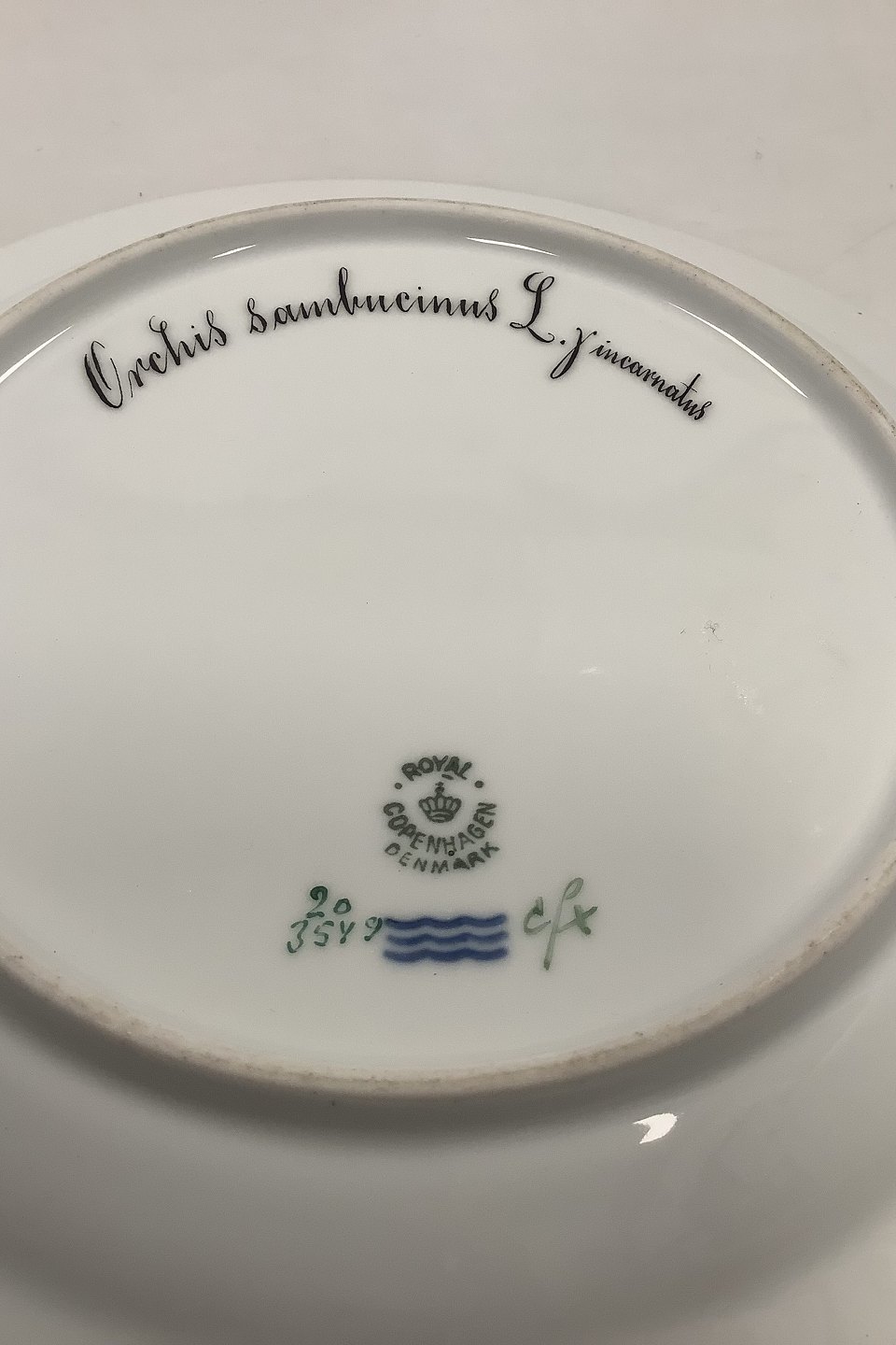 Royal Copenhagen Flora Danica Dinner Plate No. 624 (20/3549) Measures Diam 26 cm. (10.23 inch) 1. Quality. Latin Name: Orchis Sambucinus L. y. incarnatus