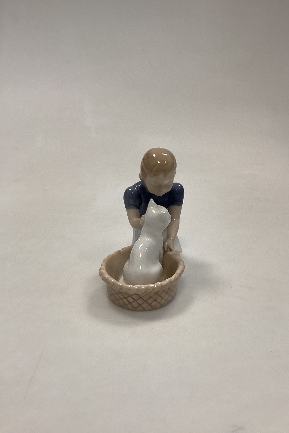 Bing and Grondahl Figurine Girl with Cat - Friends No. 2249. Measures 10 cm / 3.94 in. and is in good condition. Designed by Claire Weiss.