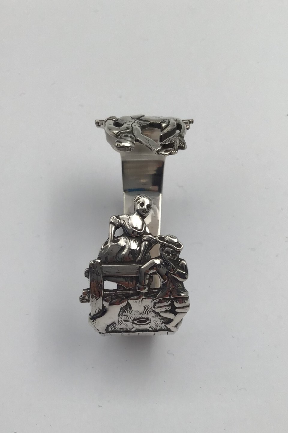 H.C. Andersen Fairy Tale Horsens Silver Napkin Ring Measures 3.7 cm x 5.5 cm (1.45 inch x 2.16 inch) Clumsy Hans / The Swineherd Weight 27 gr (0.95 oz)