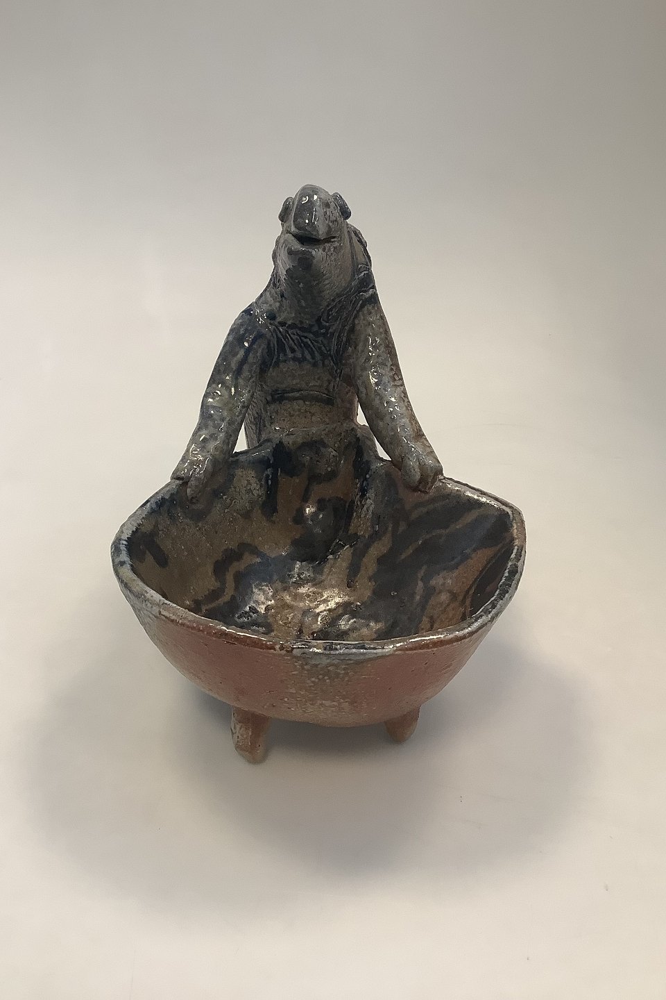 Sten Lykke Madsen Stoneware Figurine bowl with mythical beast