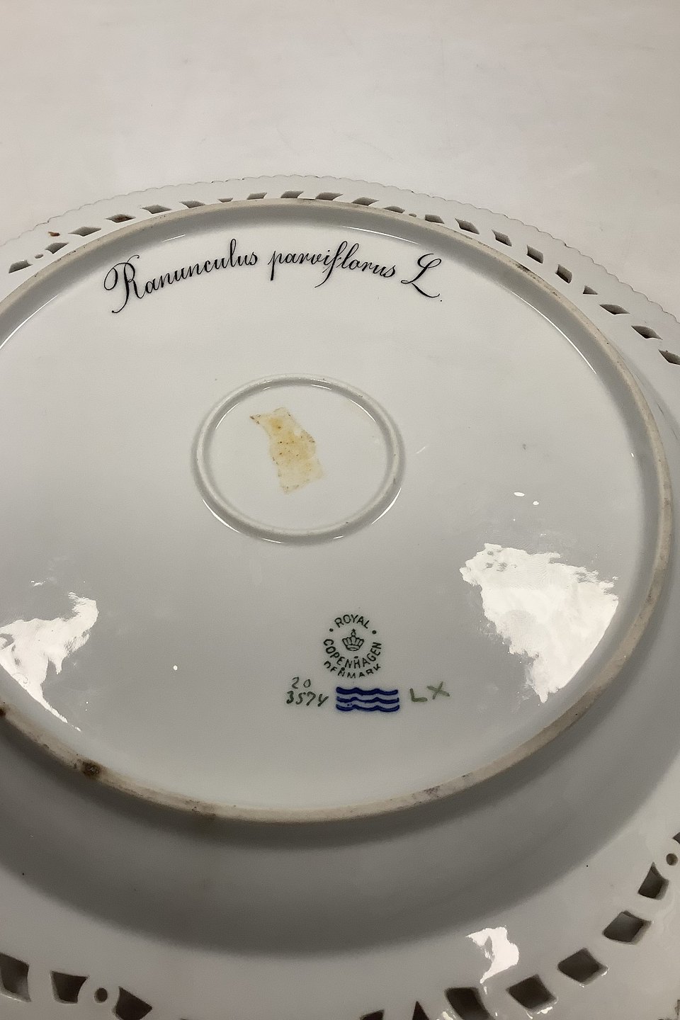 Royal Copenhagen Flora Danica Charger plate with pierced border No 20 / 3574 or 381. Measures 28 cm / 11 1/32 in. Latin name: Ranunculus parviflorus L