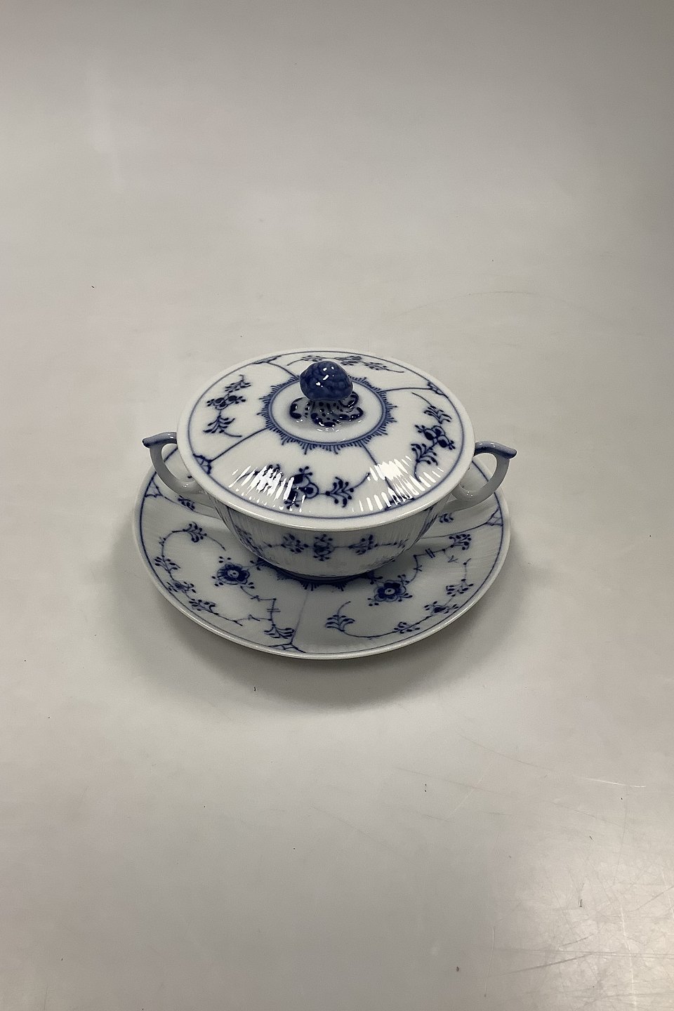 Royal Copenhagen Blue Fluted Plain Bouillon Cup with Saucer No. 2199. 11 cm diameter. 2nd Quality.
