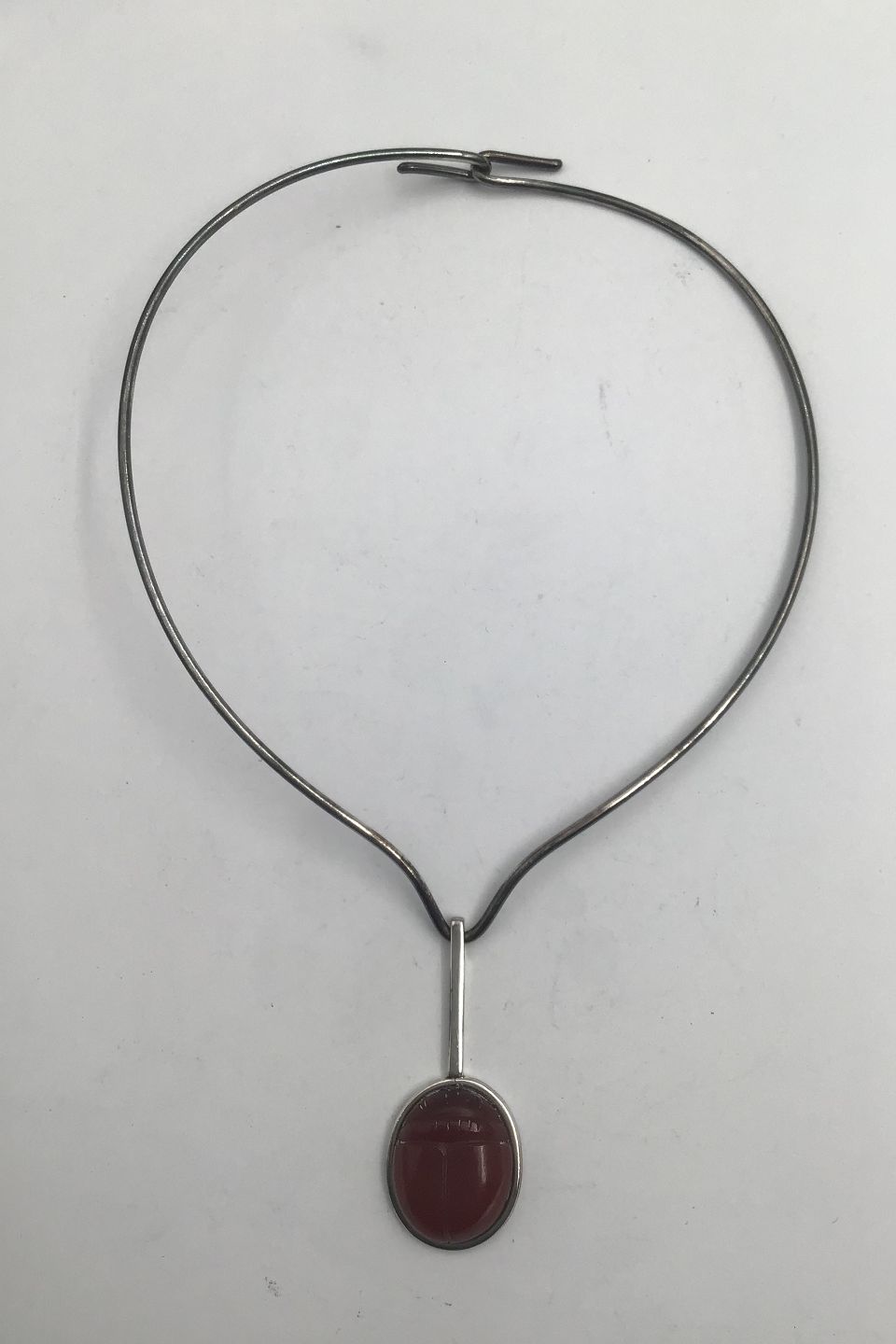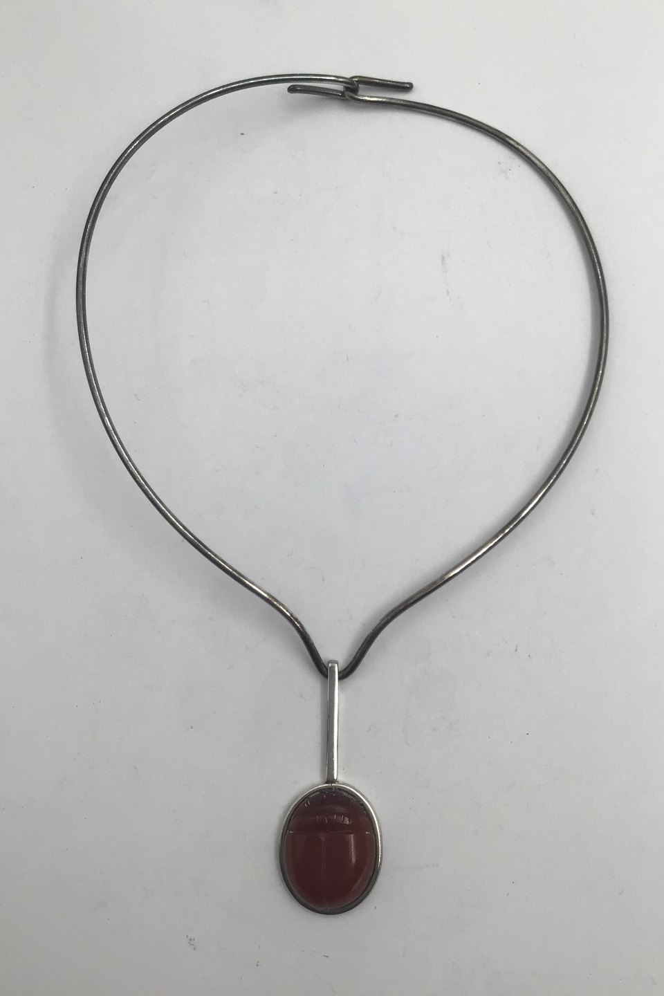 Danish Sterling Silver Neck Ring with Scarab Pendant Measures Neckring Diam 12 cm (4.72 inch) Pendant 5.5 cm x 2.3 cm (2.16 inch x 0.90 inch) Combined Weight 27 gr (0.95 oz)