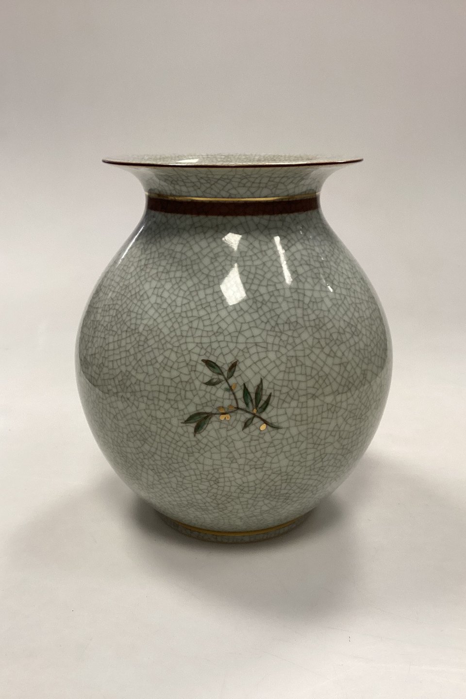 Royal Copenhagen Cracked Vase No.443/2505 in gray with gold and green decoration. 1st Quality in very fine condition.