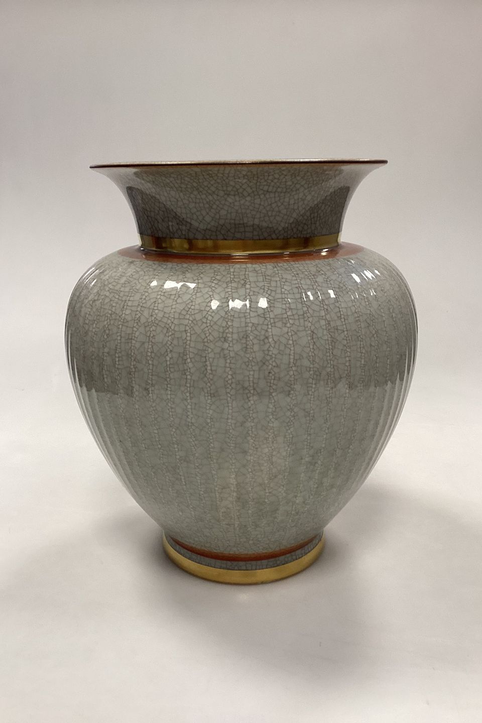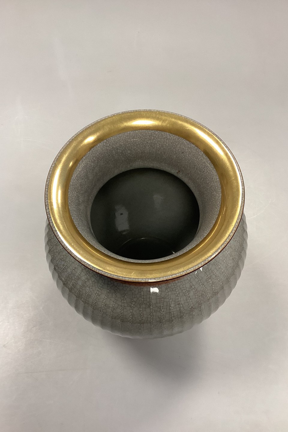 Royal Copenhagen Cracked Vase No. 259/2793 in gray with gold and siena red decoration. 1st Quality in very fine condition.