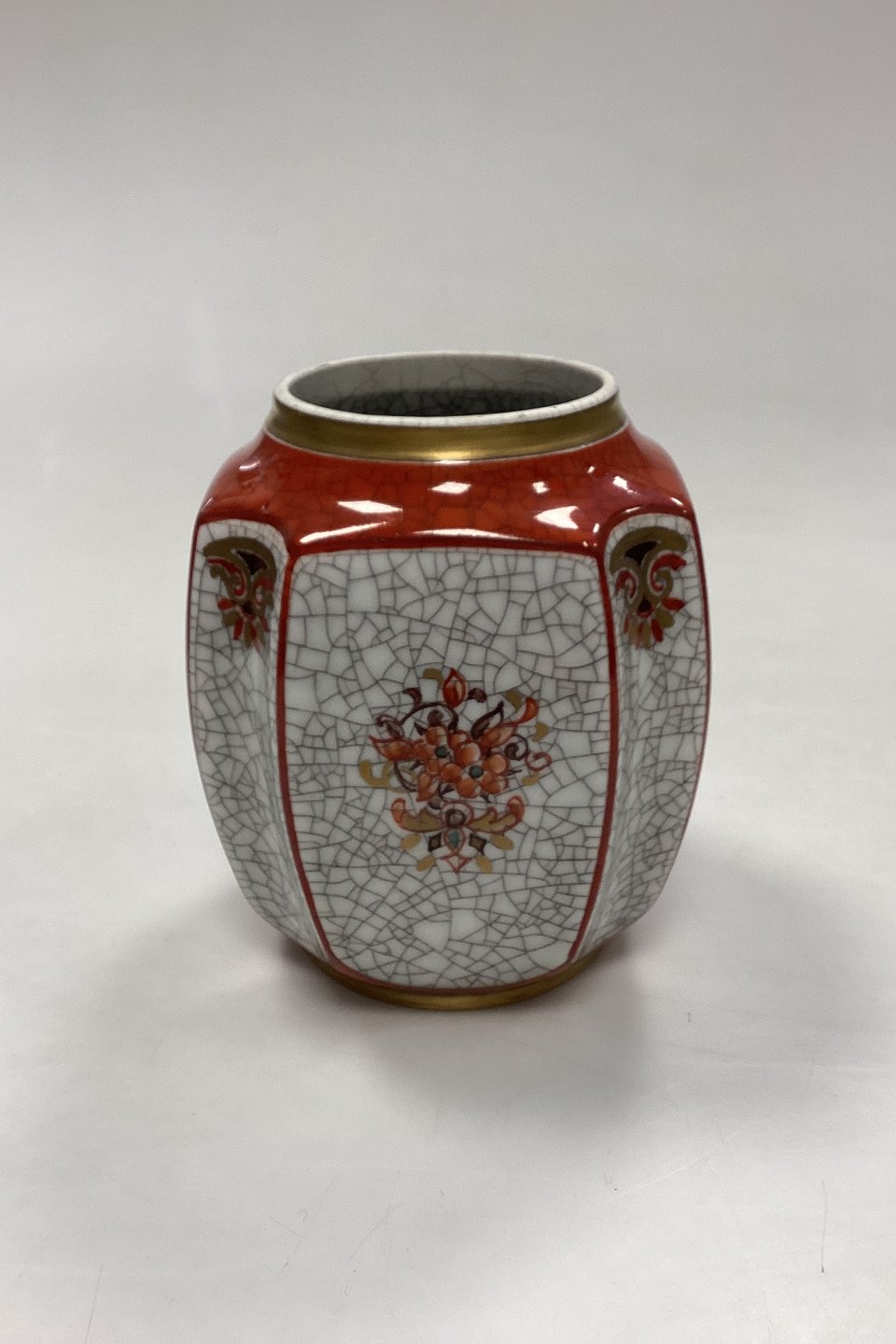 Dahl Jensen Cracked Vase No. 196/600. Decoration in siena red, green, white and gold. 2nd Quality.