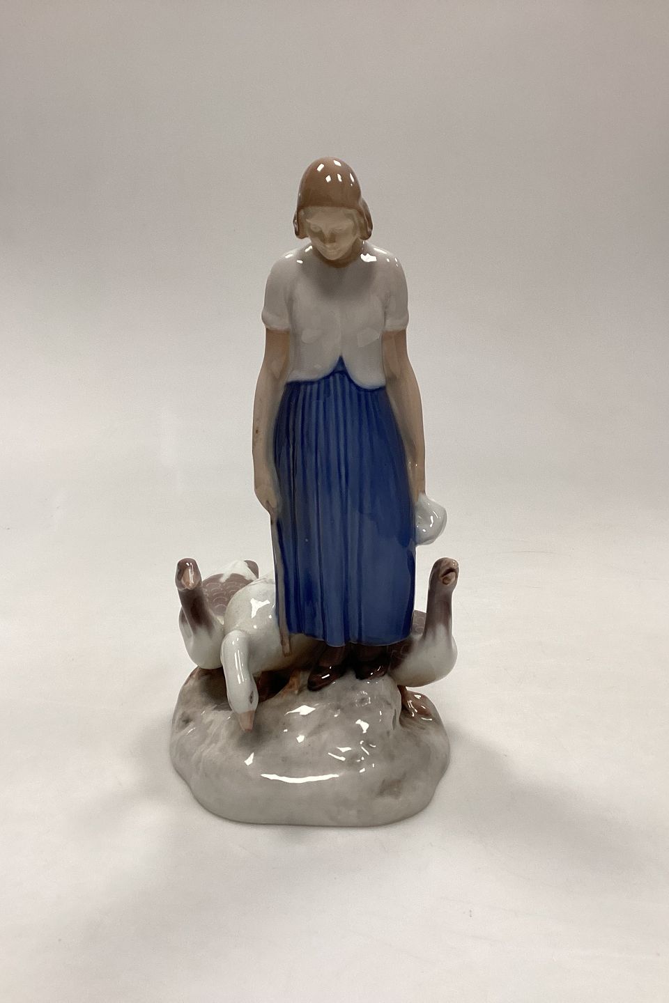 Bing and Grondahl Figurine Goose Girl No. 2254. Designed by Axel Locher. Measures 24 cm / 9.44 in. 1st Quality.