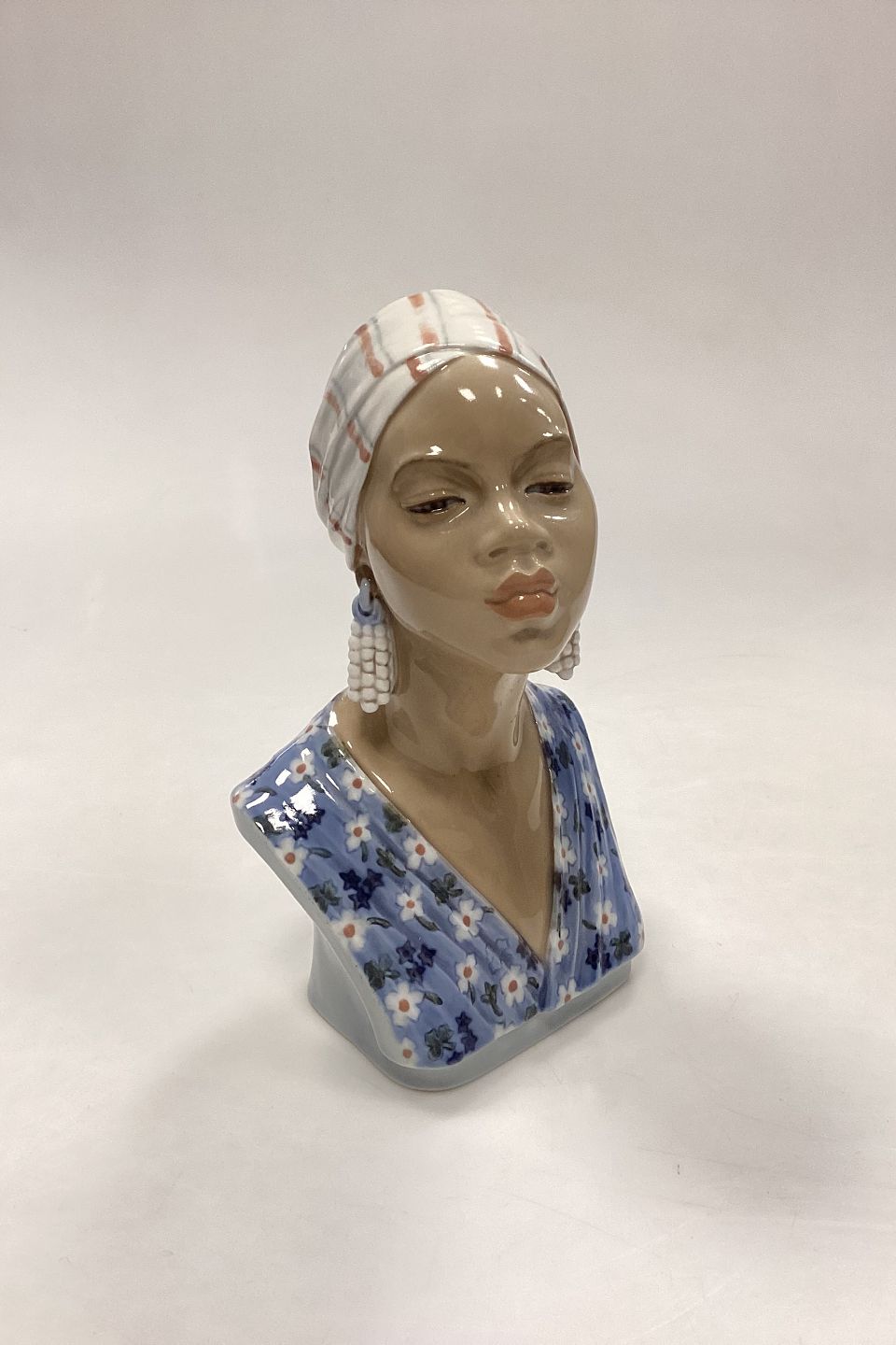 Dahl Jensen Figurine No. 1211 - Bust of African Woman. Measures 20 cm x 12 cm / 7.87 in. x 4.72 in. 2nd Quality in good condition, but with small black impurities (burning defects) on the neck and back of the plinth.