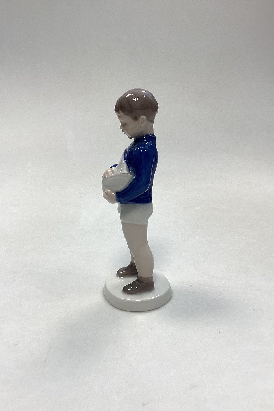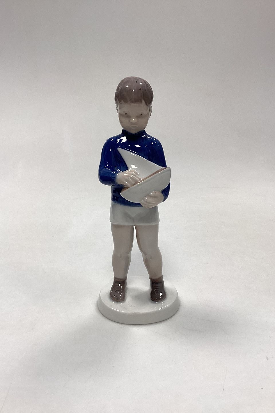 Bing and Grondahl Figurine Boy with Sailboat No. 2380. Designed by Claire Weiss. Measures 18 cm / 7.08 in. 1st Quality
