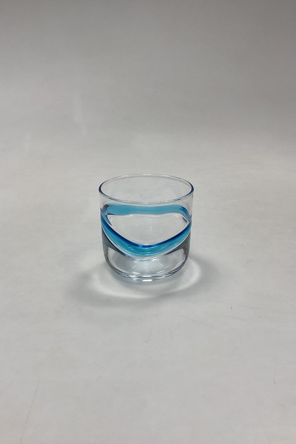 Holmegaard Blue Hour Drink Glass. Measures 7 cm x 7.2 cm / 2.75 in. x 2.83 in. Designed in 1971 by Christel and Christer Holmgren.