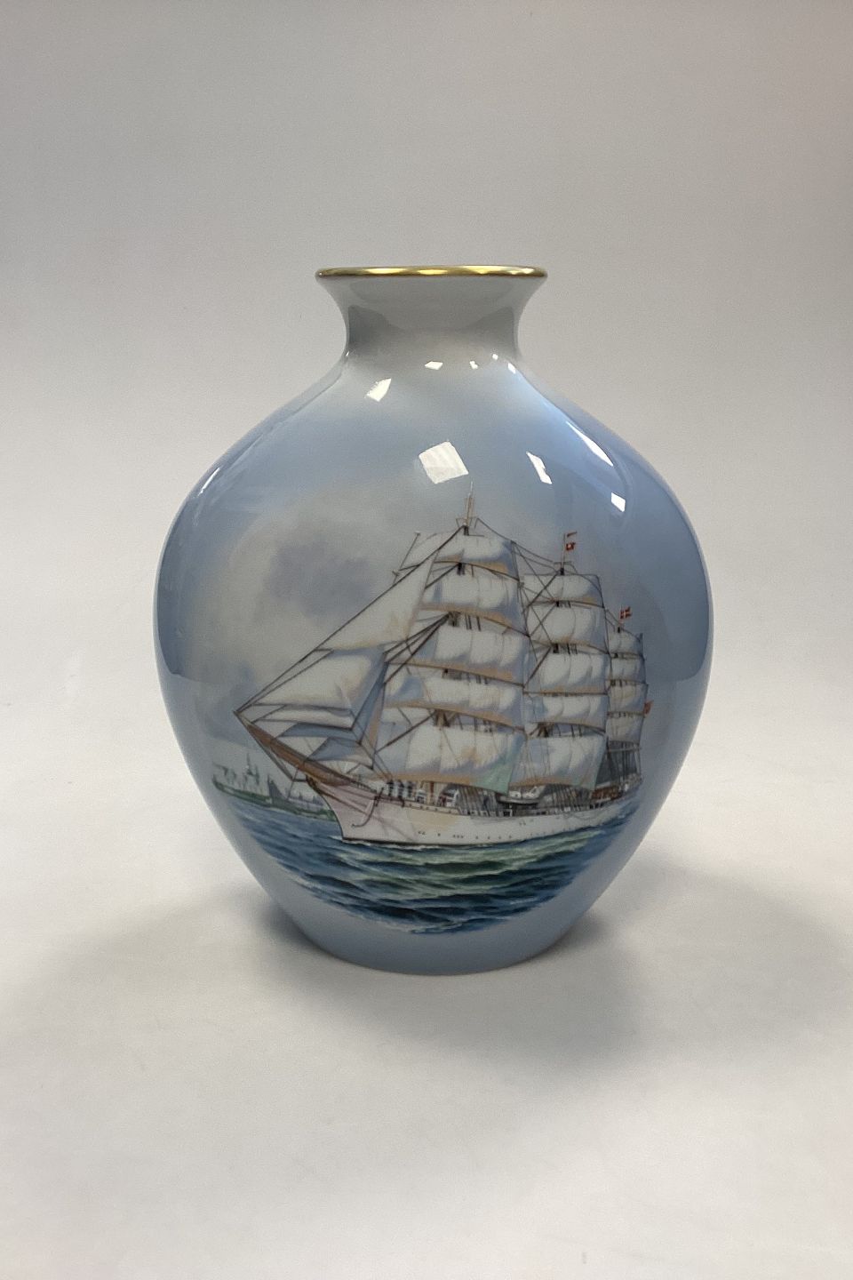 Bing and Grøndahl Art Nouveau Vase - The Training Ship Danmark at Kronborg No. 8872/5506. Motif by James E. Mitchell. Produced in limited edition No. 816 of 2500.