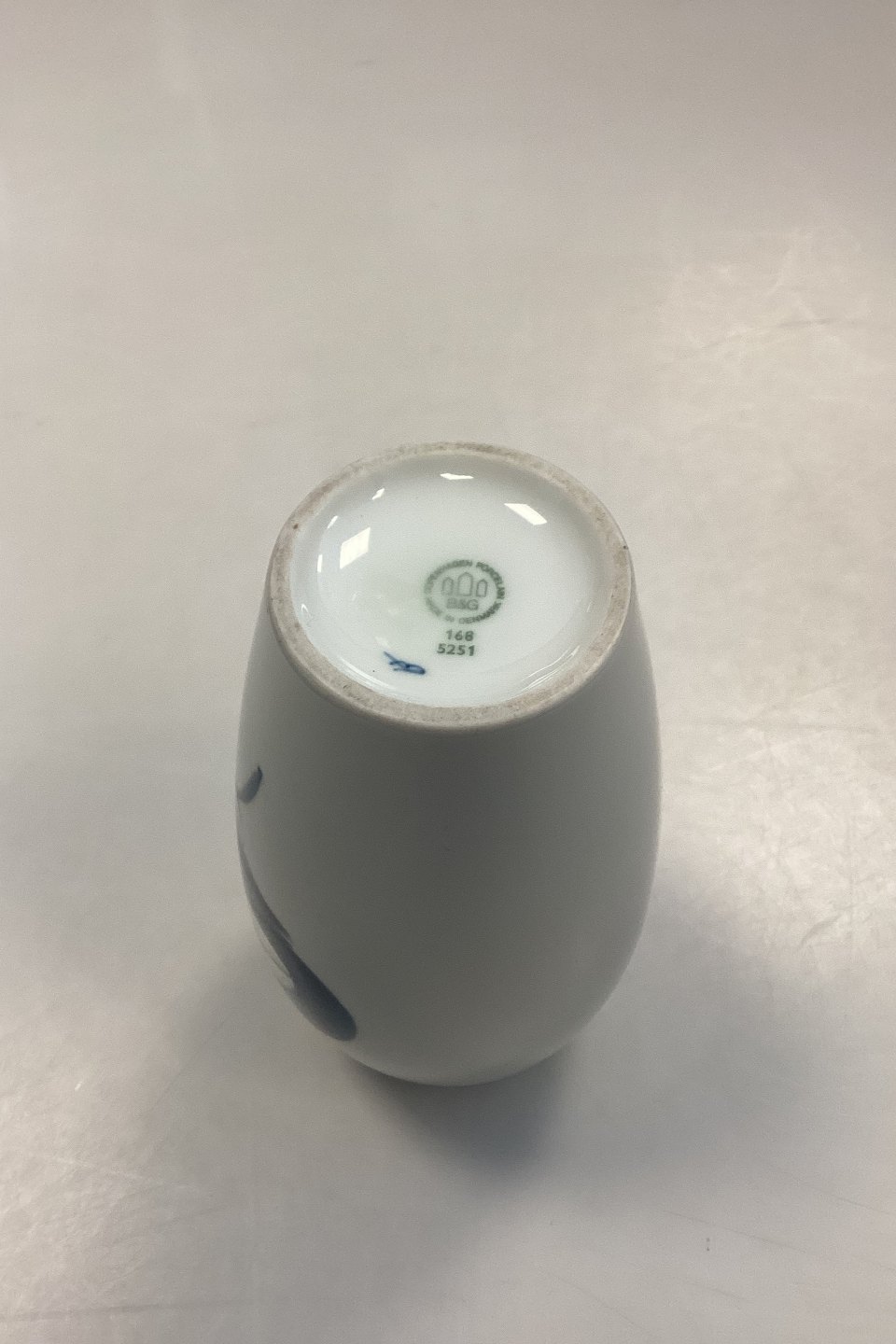 Bing and Grondahl Vase No. 168/5251. Measures 18 cm / 7.09 in. Blue decoration.