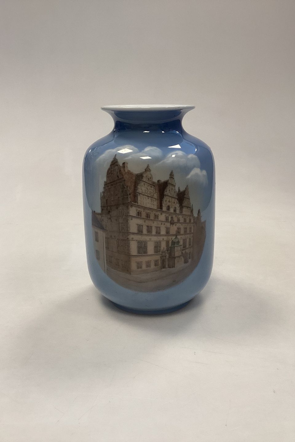 Bing and Grondahl Vase No. 1303/5463 - Jens Bang's House in Aalborg. Measures 17.5 cm / 6.88 in.